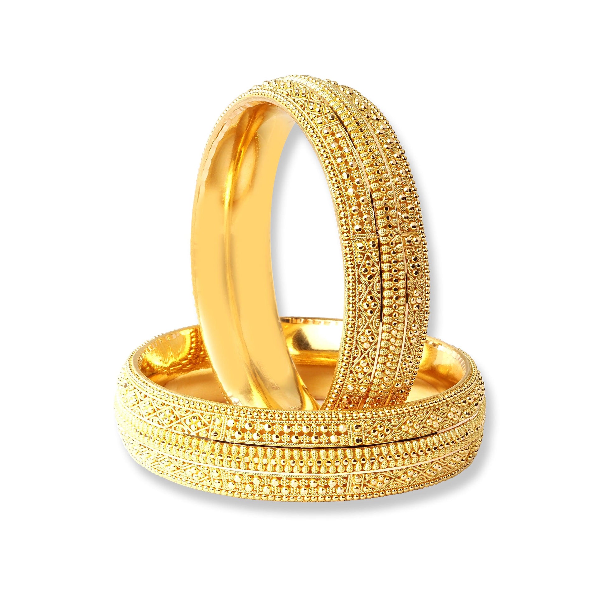 Entdecken Sie die zeitlose Schönheit unserer Armreifen aus 22 Karat Gold mit Filigranarbeit . Diese Armreifen zeugen von exquisiter Handwerkskunst und verleihen mit ihren filigranen Designs jedem Outfit einen Hauch von Eleganz. Die filigranen Muster sind sorgfältig gefertigt und machen jeden Armreif zu einem einzigartigen Kunstwerk. Ob zu einem besonderen Anlass oder einfach zur Verschönerung Ihres Alltagslooks – diese Armreifen sind die perfekte Wahl für alle, die edlen Schmuck zu schätzen wissen.