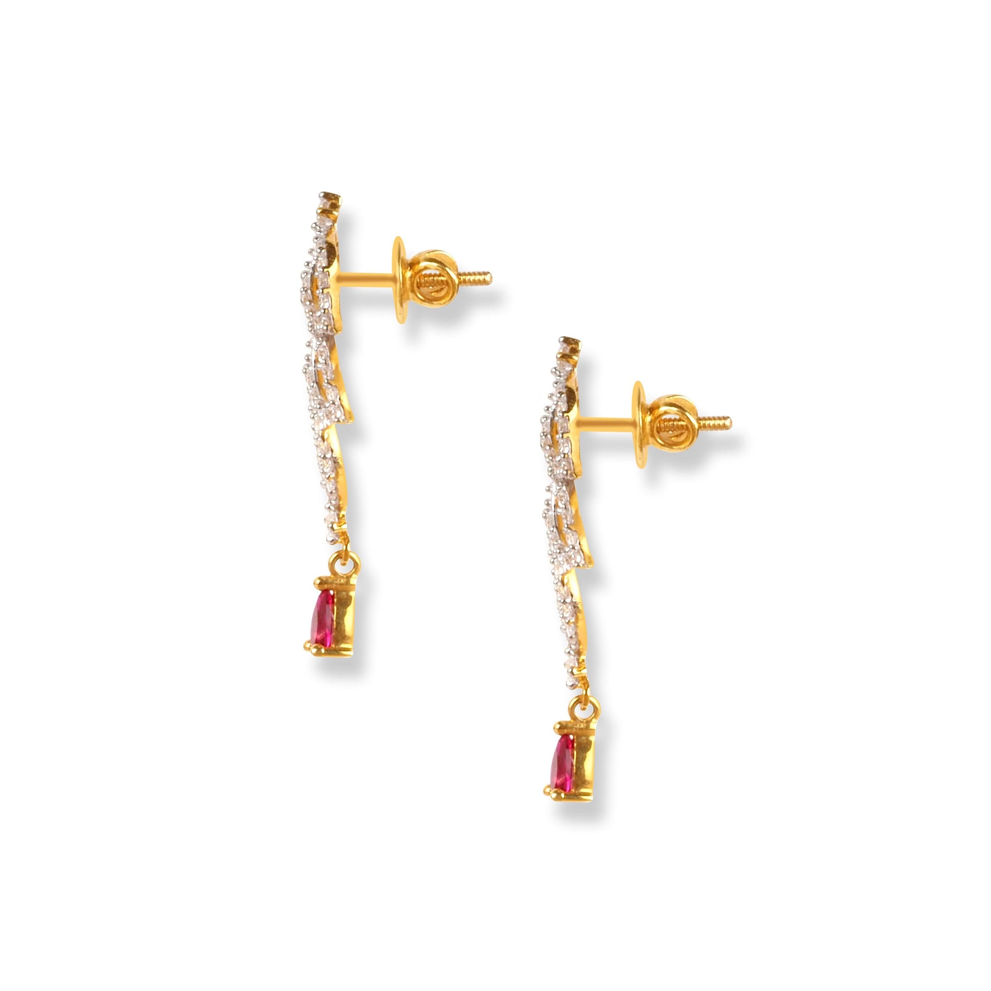 22ct Gold Necklace set with Swarovski Zirconia's and Red Stones - NS14058
