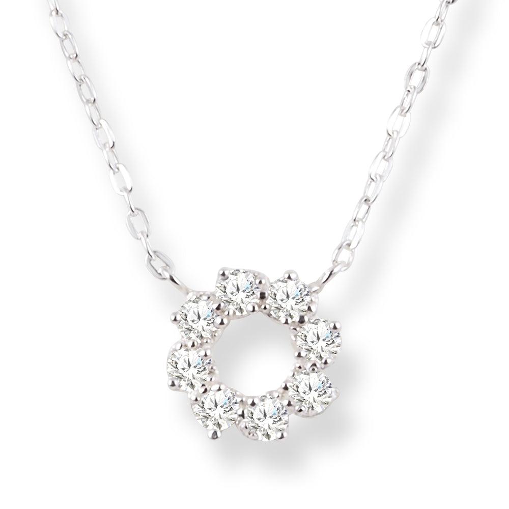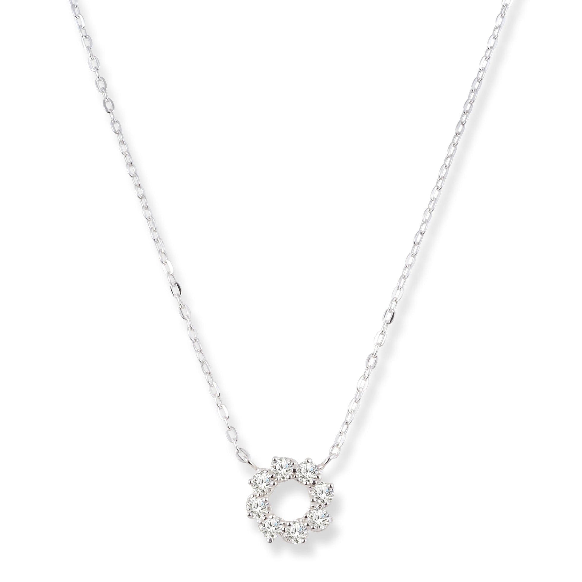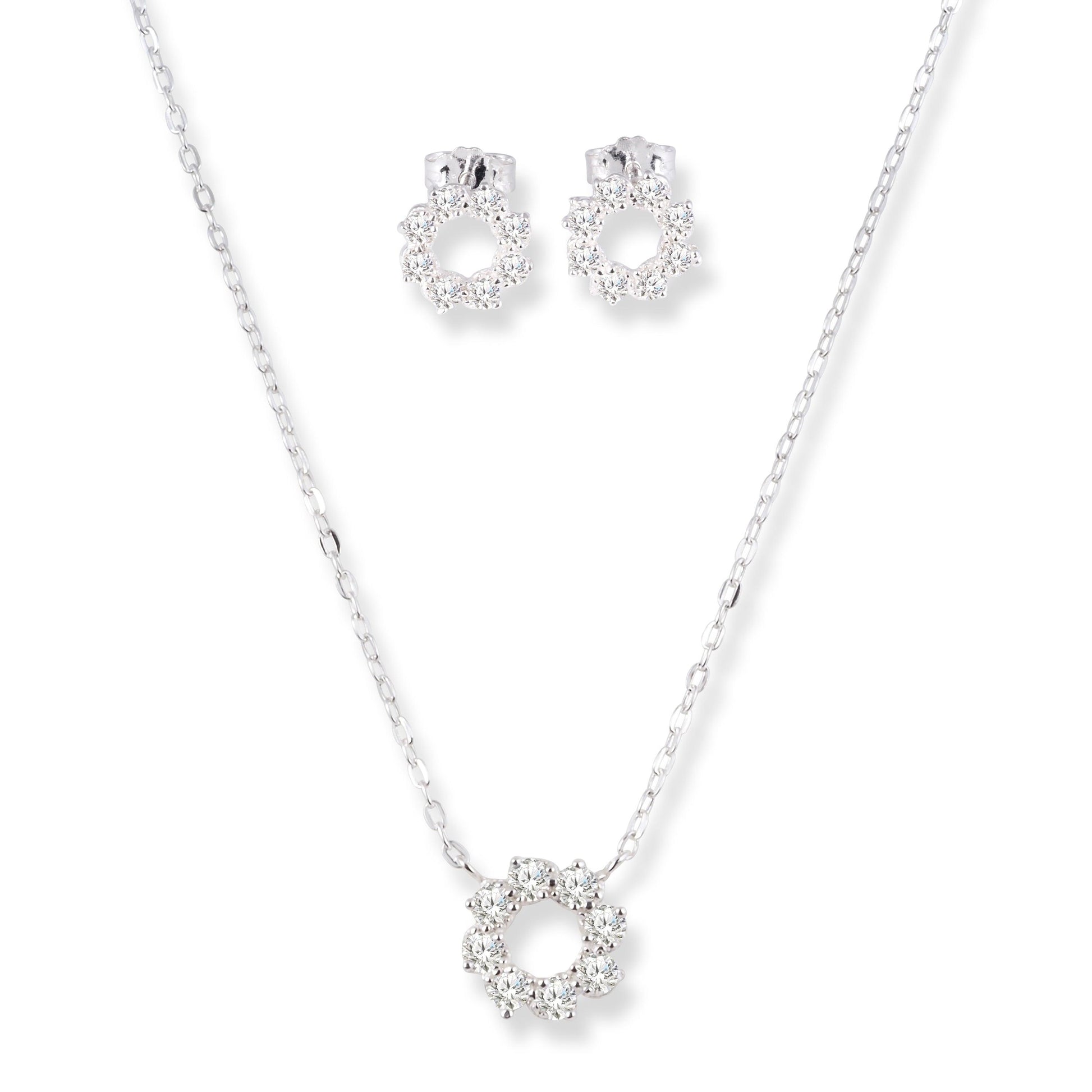 Sterling Silver Set with Flower Design and Cubic Zirconia Stones (Necklace + Earrings) SN172A/SE503A - Minar Jewellers