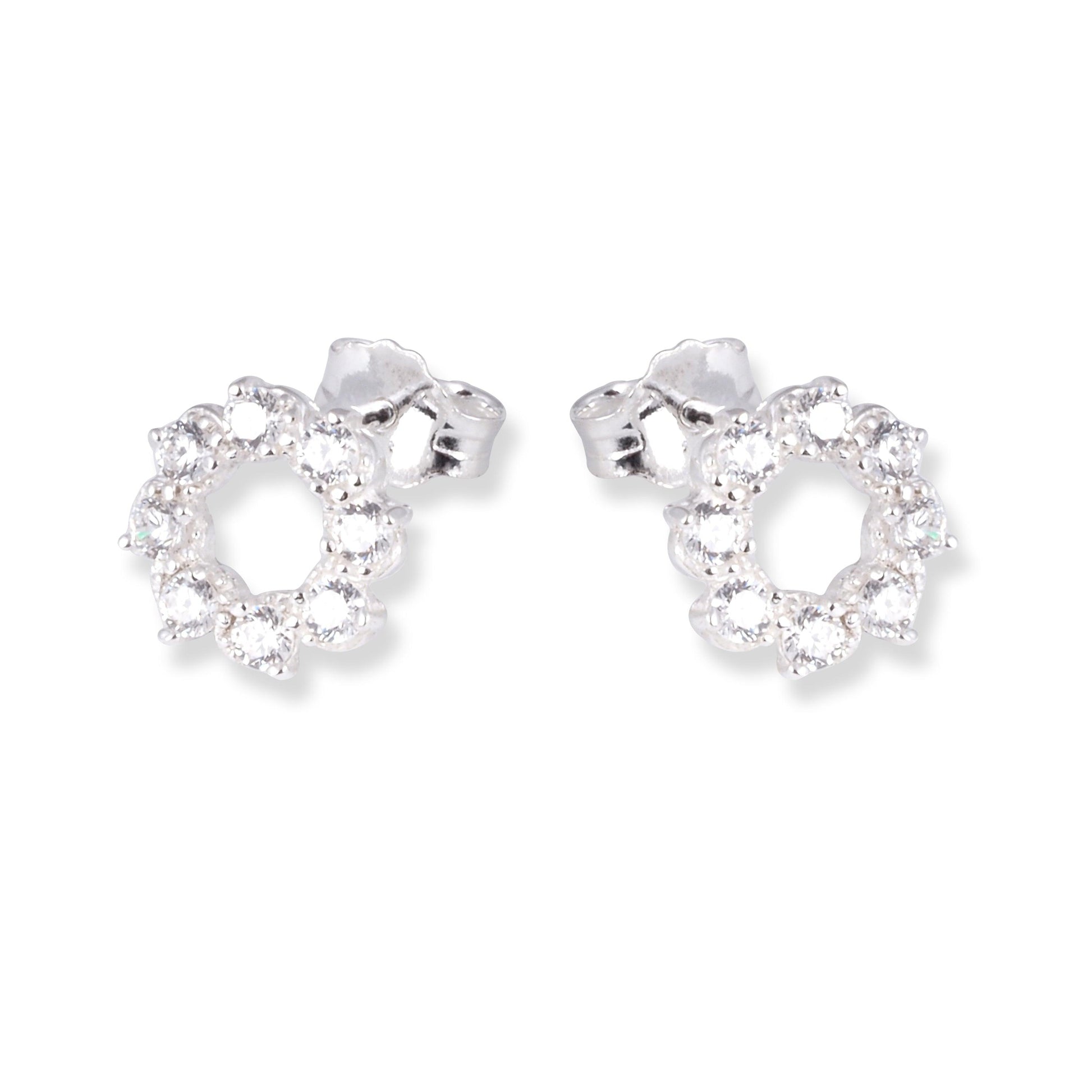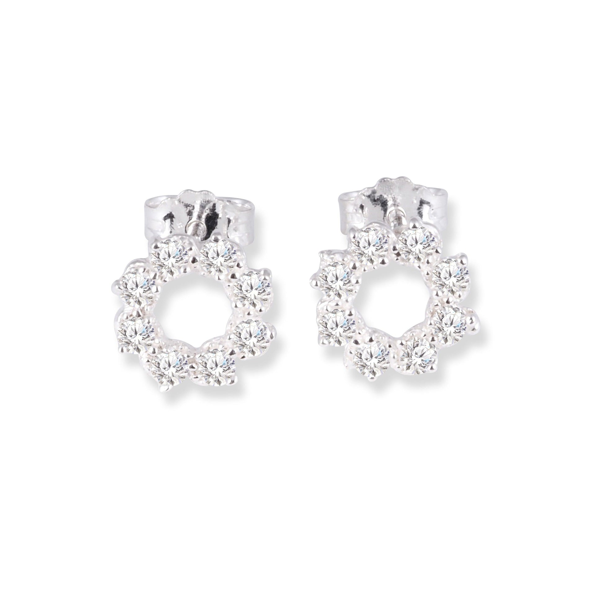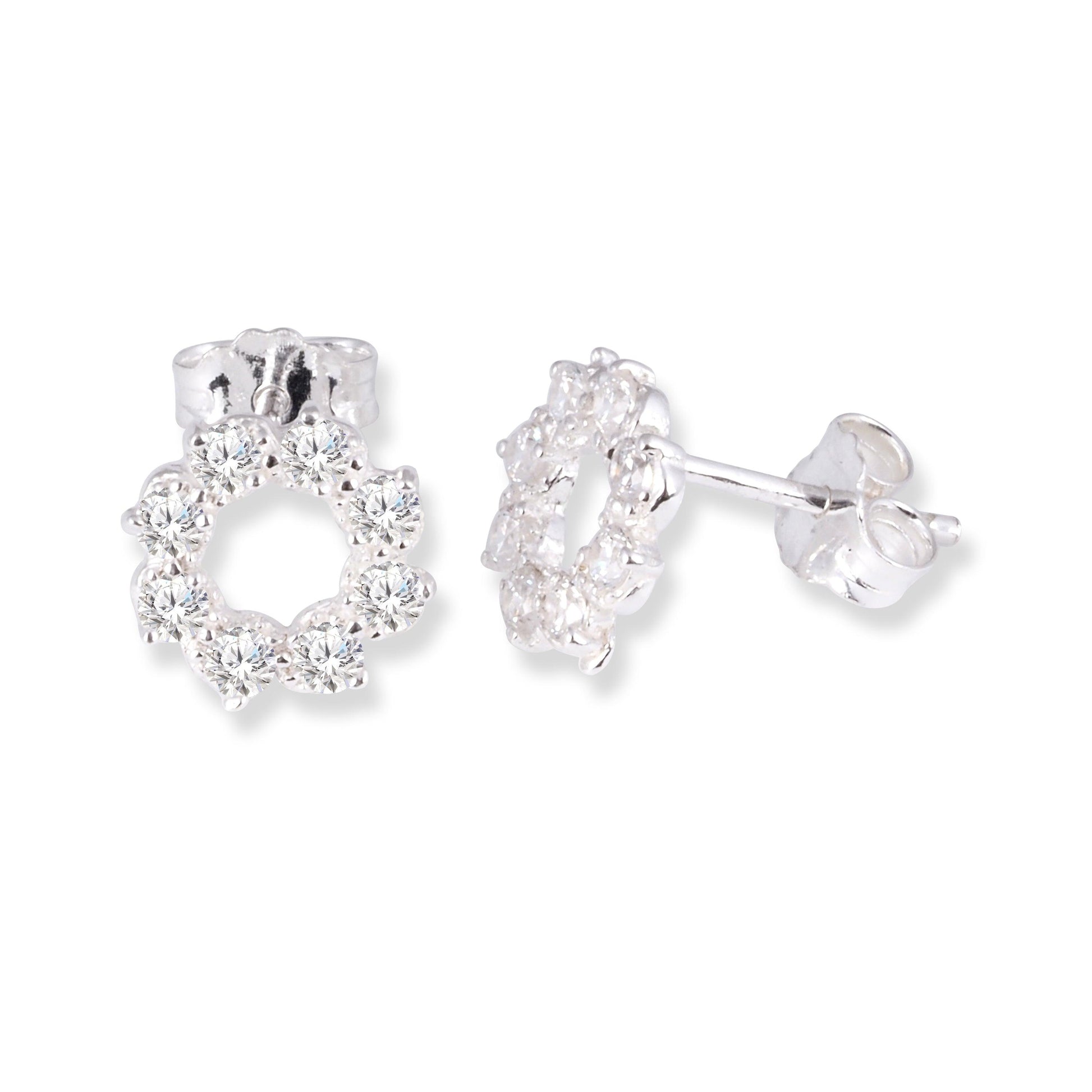 Sterling Silver Set with Flower Design and Cubic Zirconia Stones (Necklace + Earrings) SN172A/SE503A - Minar Jewellers