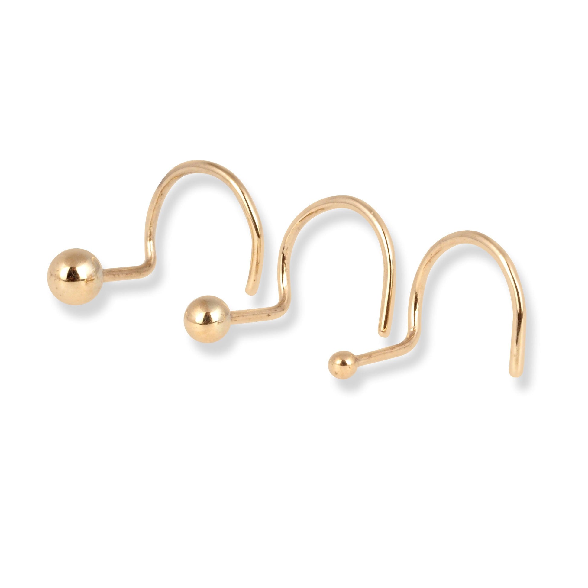 18ct Yellow Gold Wire Back Nose Stud with Plain Gold Ball (1.5mm - 3mm) NS-7562 - Minar Jewellers