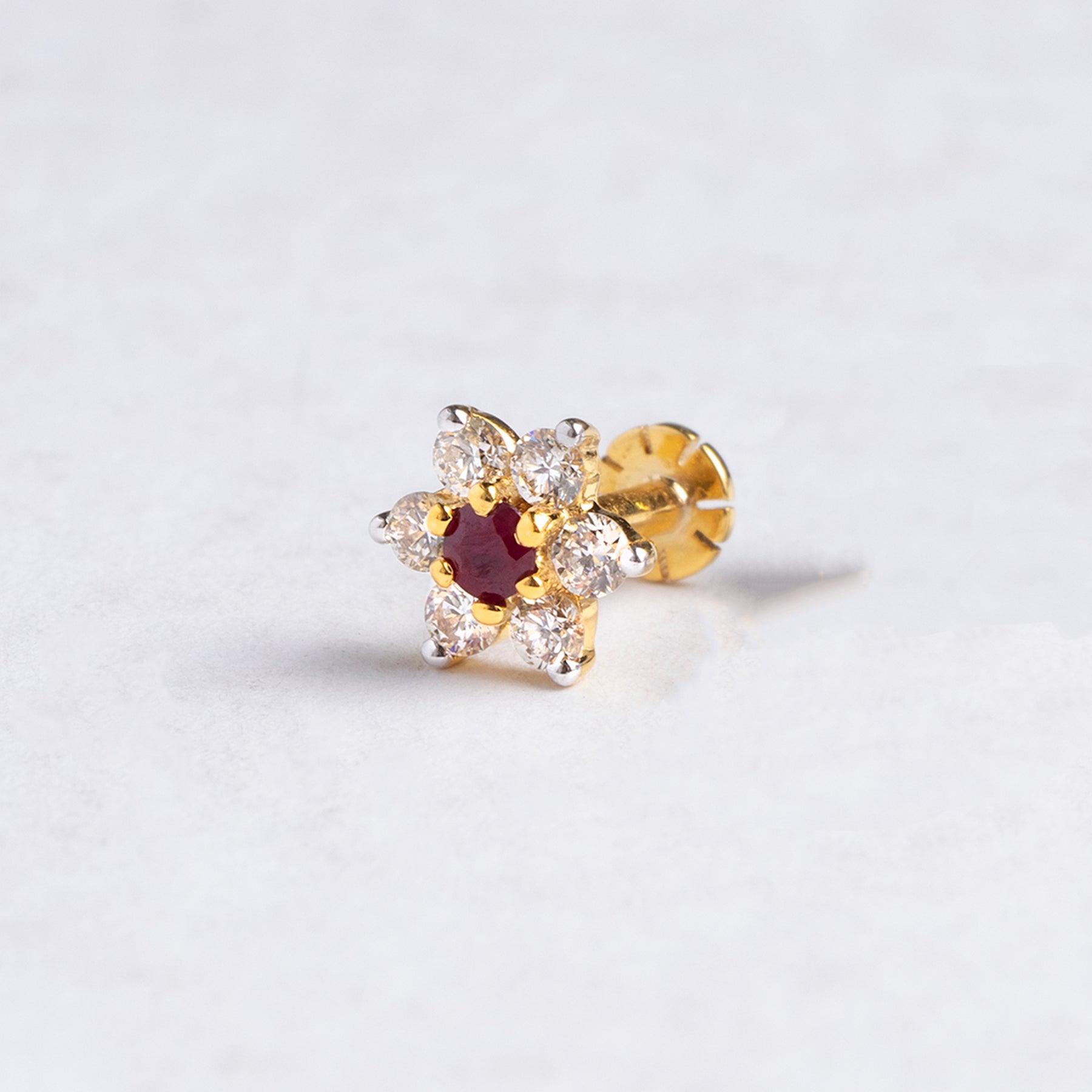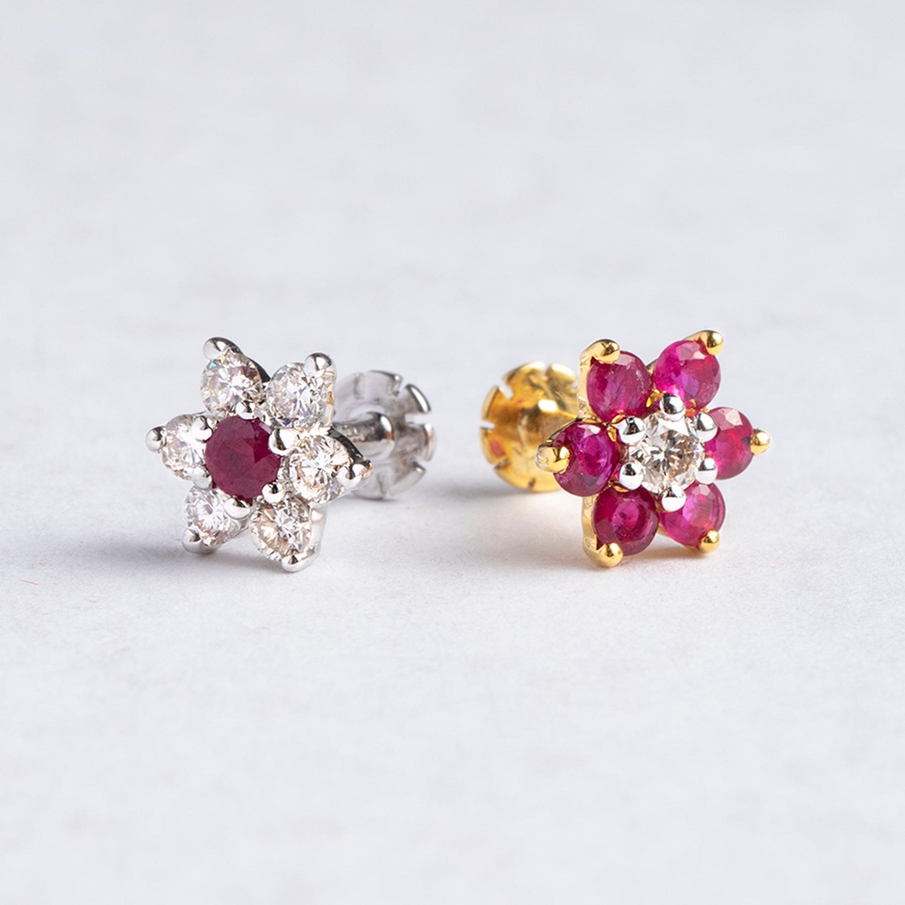 18ct Gold Diamond and Ruby Cluster Screw Back Nose Studs MCS3445 MCS2658 - Minar Jewellers