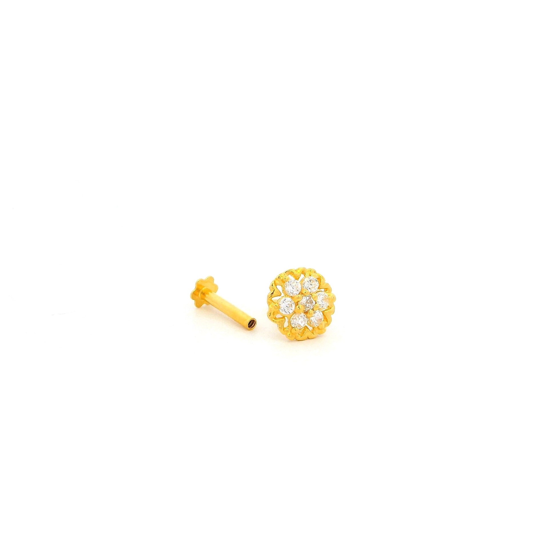 18ct Yellow Gold Cubic Zirconia Nose Stud – Rosette Floral Design