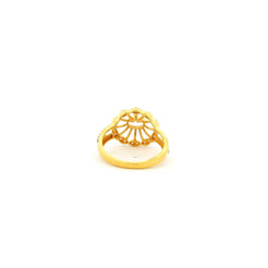 The open halo design allows light to reflect from every angle, enhancing the sparkle and giving the ring a bold yet elegant presence. Crafted in rich 22ct yellow gold, the setting combines classic craftsmanship with a striking decorative style, making it perfect for occasions where you want your jewellery to stand out.