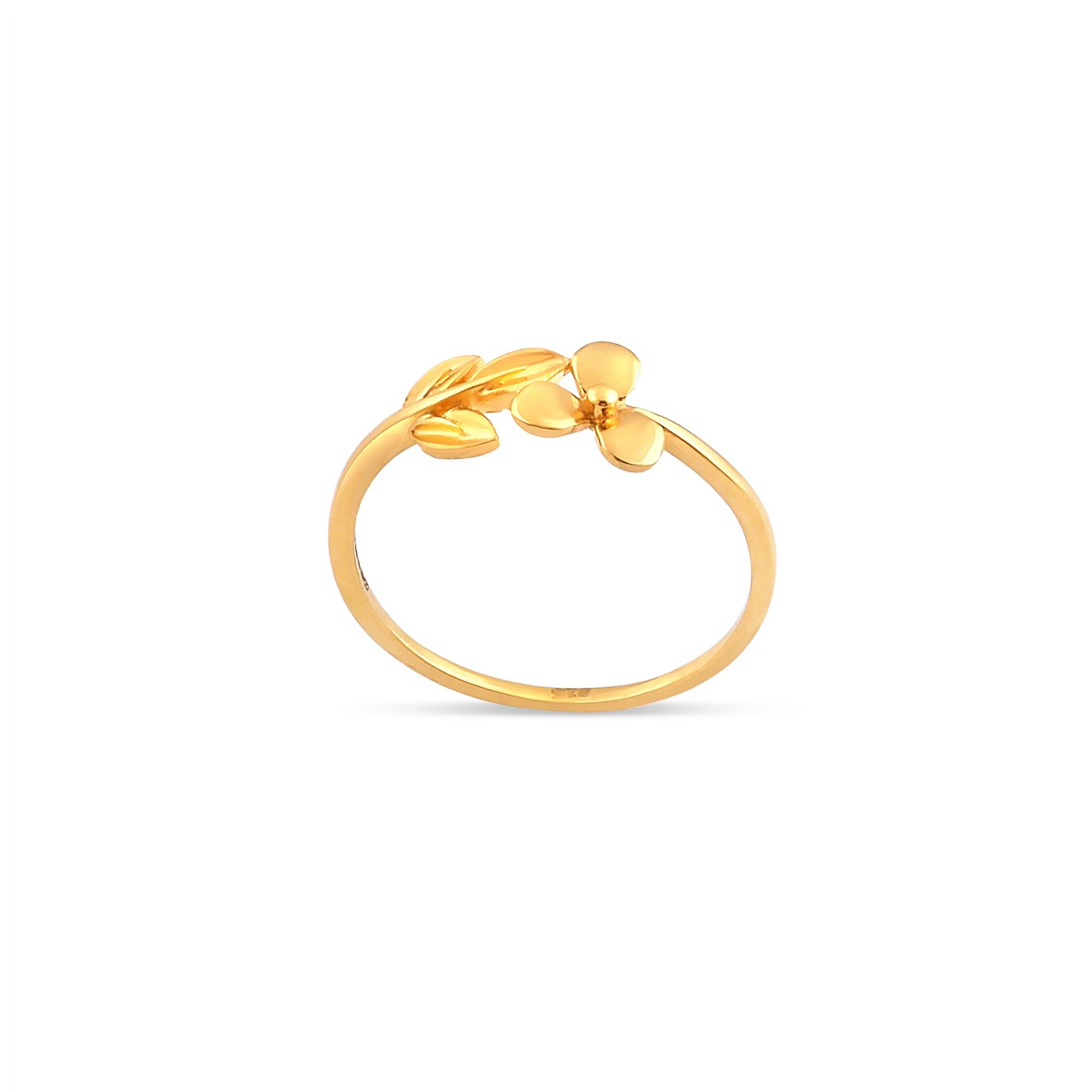 22ct Gold Delicate Leaf and Flower Ring with Shiny Finish | Size M½