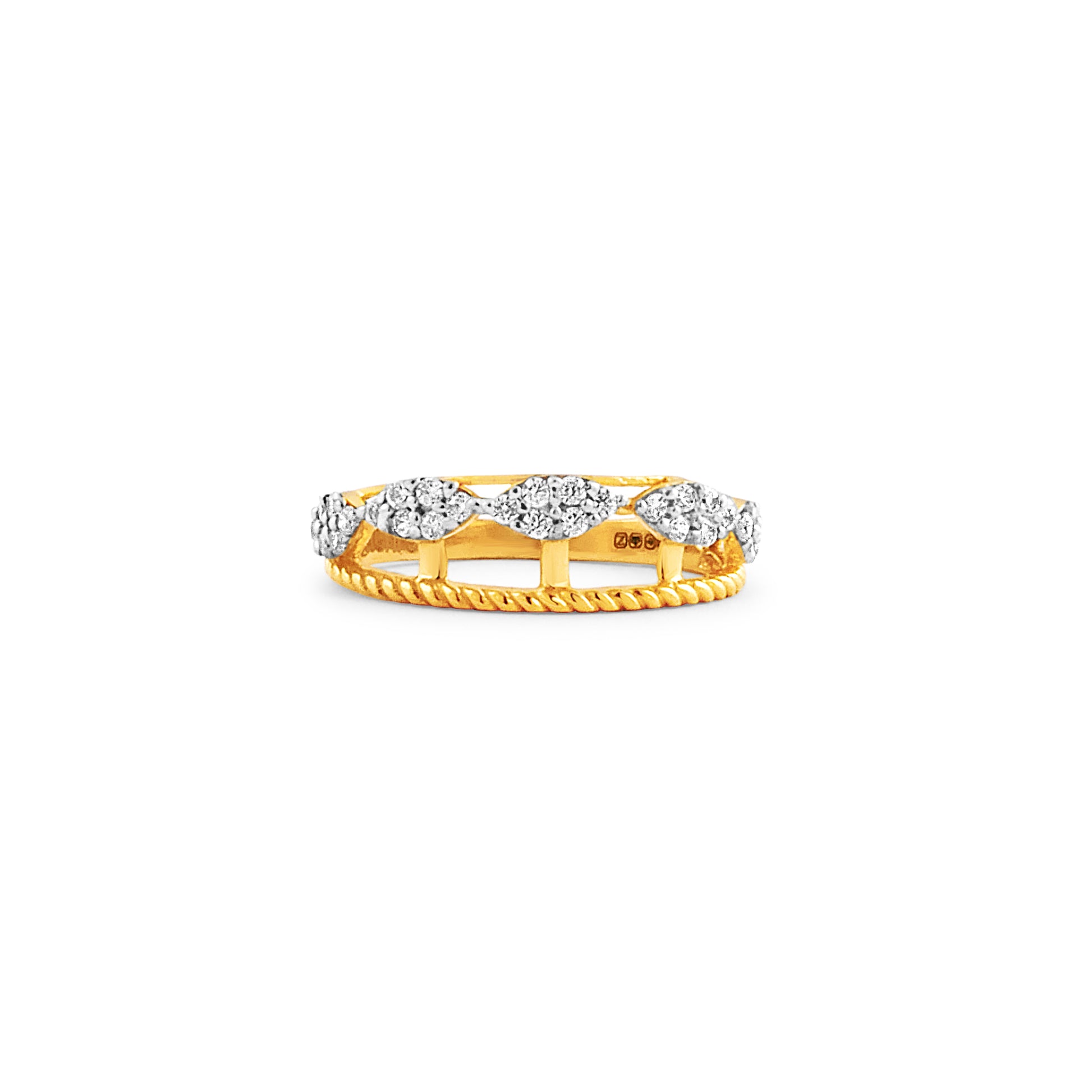 Enhance your jewellery collection with this elegant 22ct Gold Wave Design Dress Ring with Cubic Zirconia Stones, crafted to bring a refined and contemporary touch to your look. Featuring a graceful wave-inspired design, this ring showcases a flowing pattern that symbolises movement and timeless style.