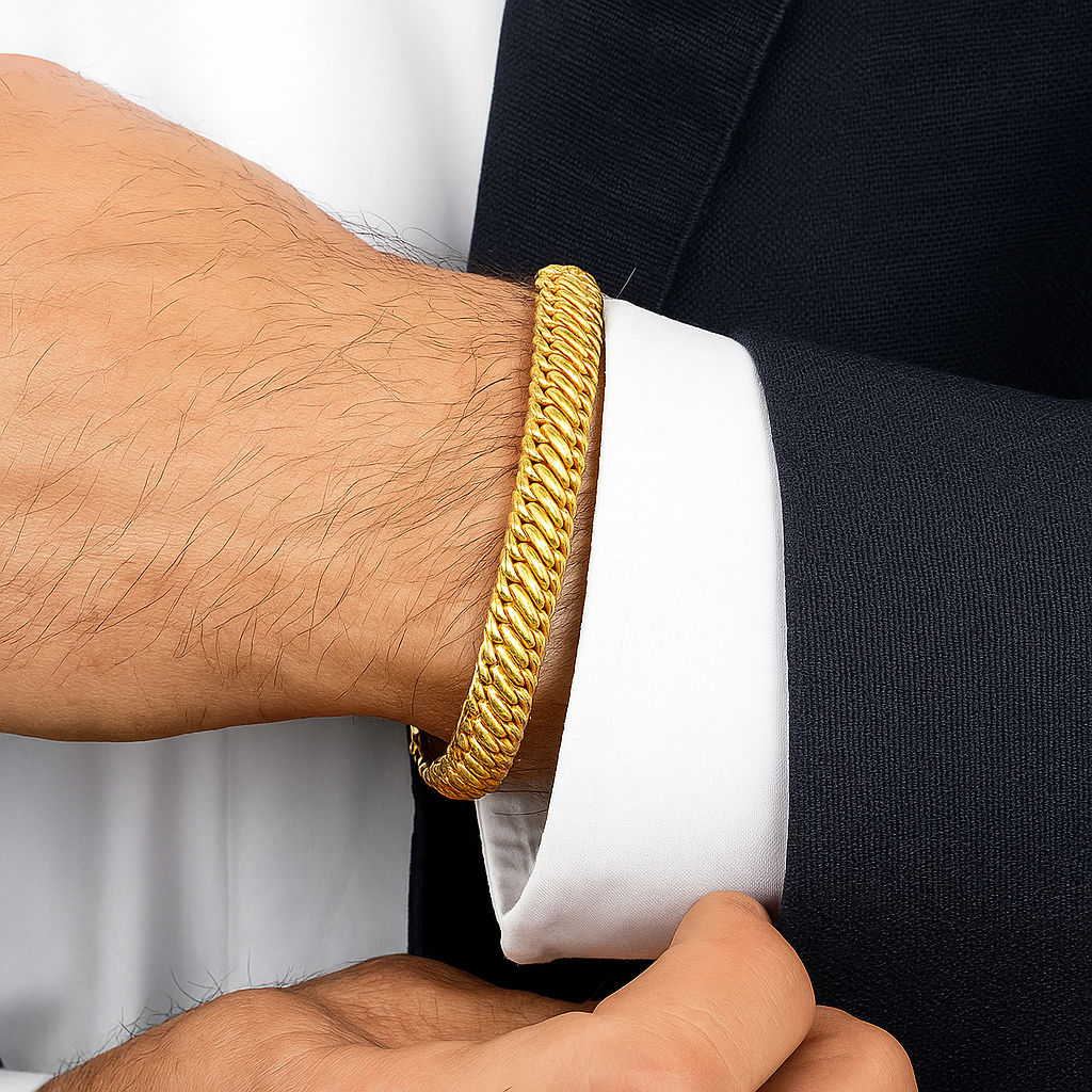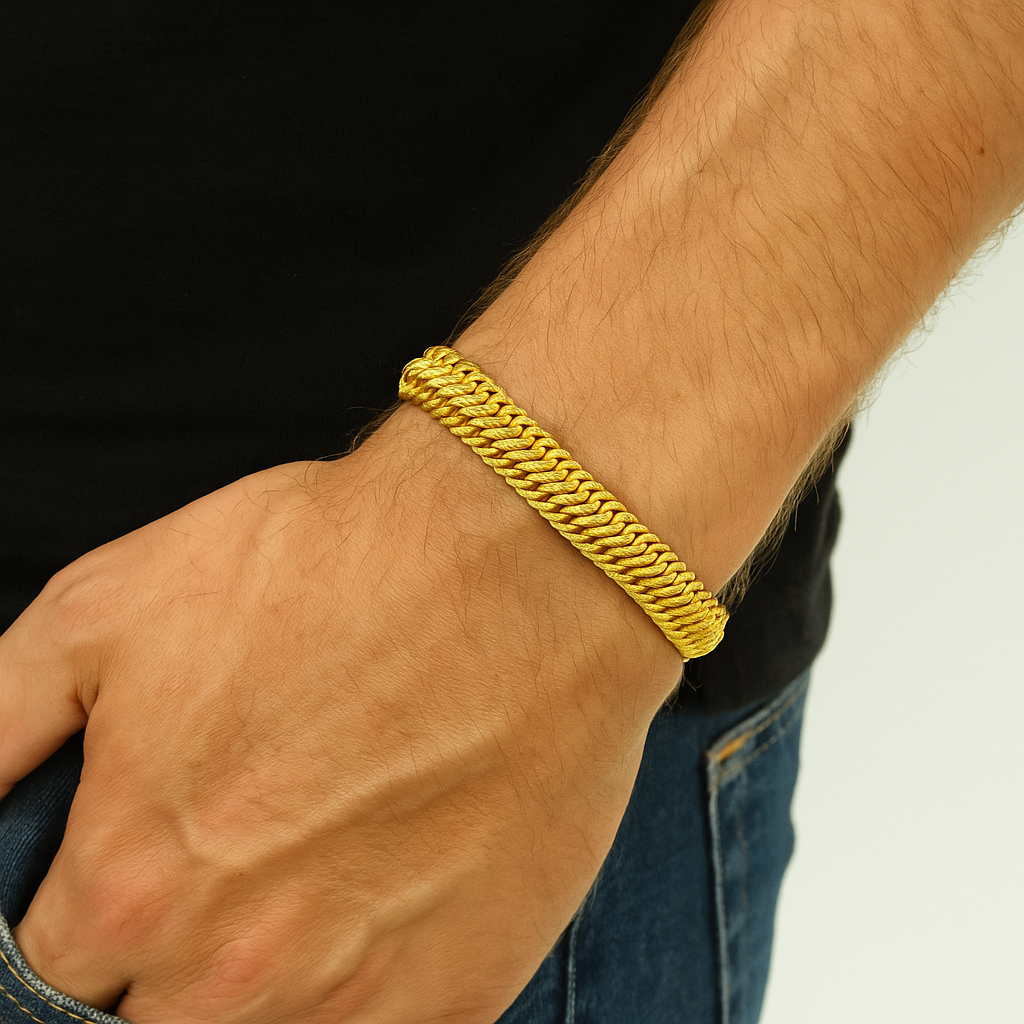 Elegantes Herrenarmband aus 22 Karat Gold mit Intertwine-Muster und sicherem U-Verschluss – Zeitloser Luxus für Männer