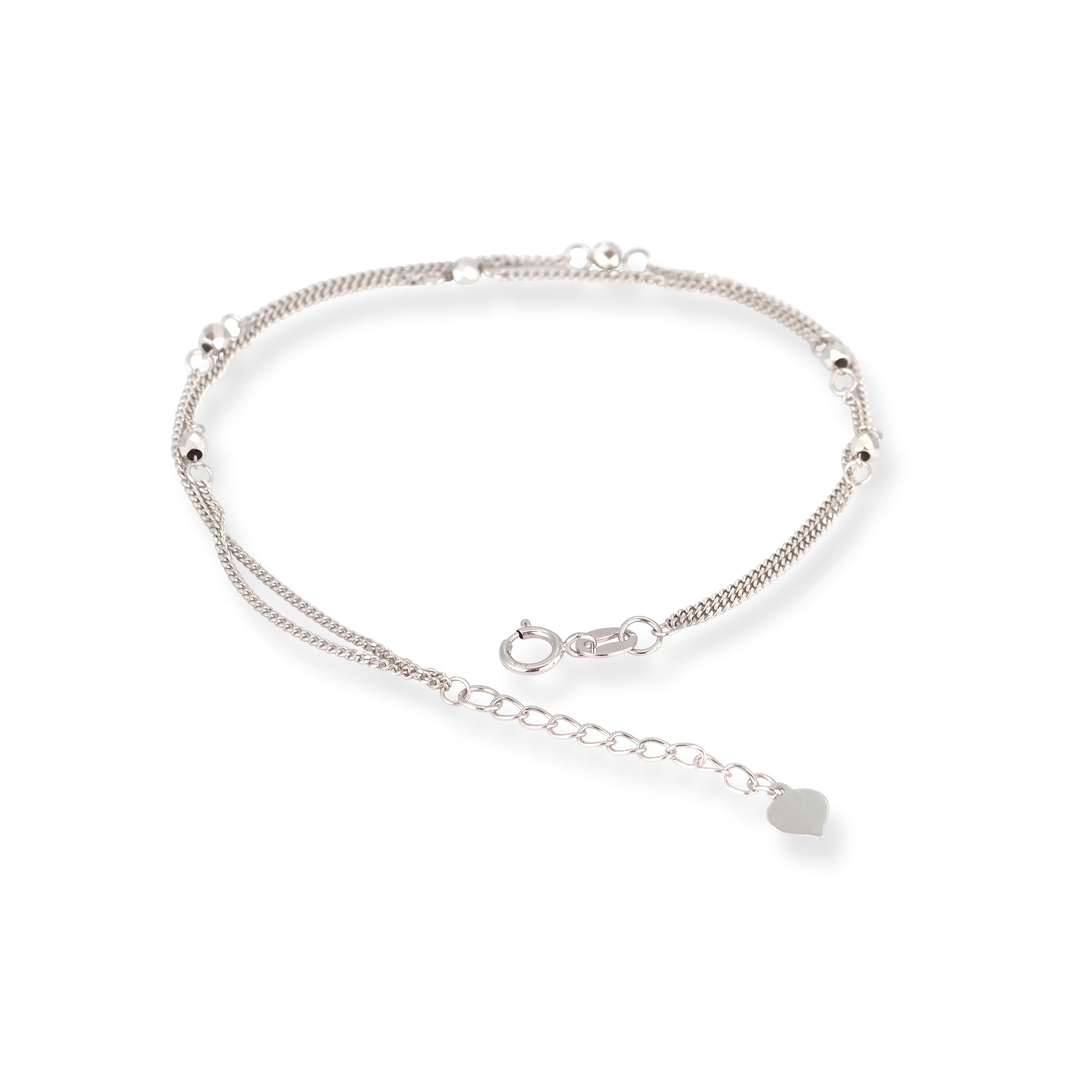 18ct White Gold Adjustable Beaded Bracelet – Double Chain Style