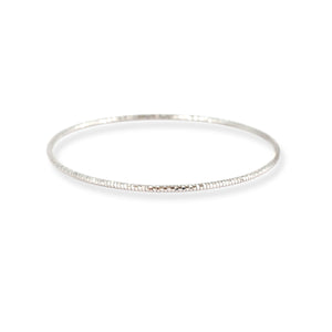 Elegant and understated, this 18ct White Gold Delicate Textured Bangle – Minimal Elegant Style is designed for those who appreciate refined simplicity. Crafted from luxurious 18ct white gold, the bangle features a slim round profile enhanced with a subtle textured finish that gently catches the light.