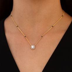 The cubic zirconia stones in this mangalsutra offer exceptional brilliance at incredible value. These premium CZ stones have been carefully selected for their clarity and fire, giving you the look of diamonds without the hefty price tag. Each stone reflects light beautifully, creating that coveted sparkle every bride dreams of on her special day.