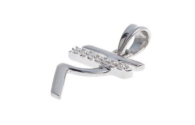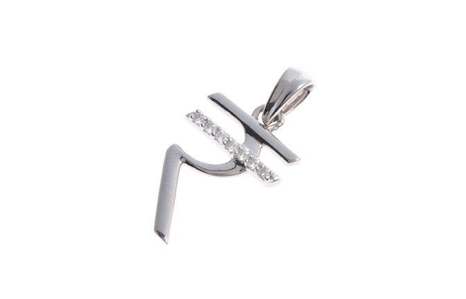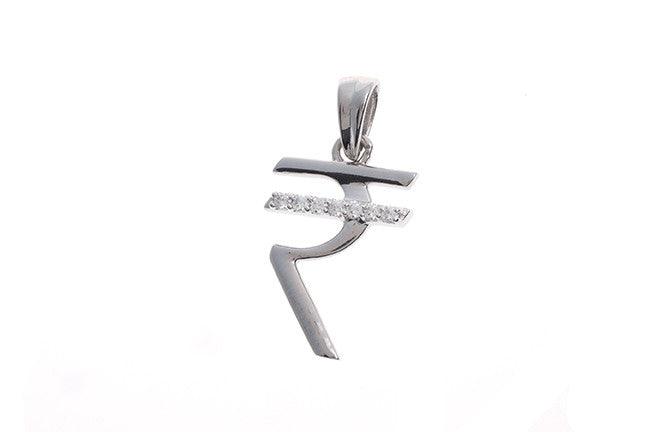 18ct White Gold Cubic Zirconia Rupee Symbol Pendant (2.02g) P11016 - Minar Jewellers