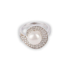 18ct White Gold Diamond & Cultured Pearl Dress Ring MCS1466 - Minar Jewellers