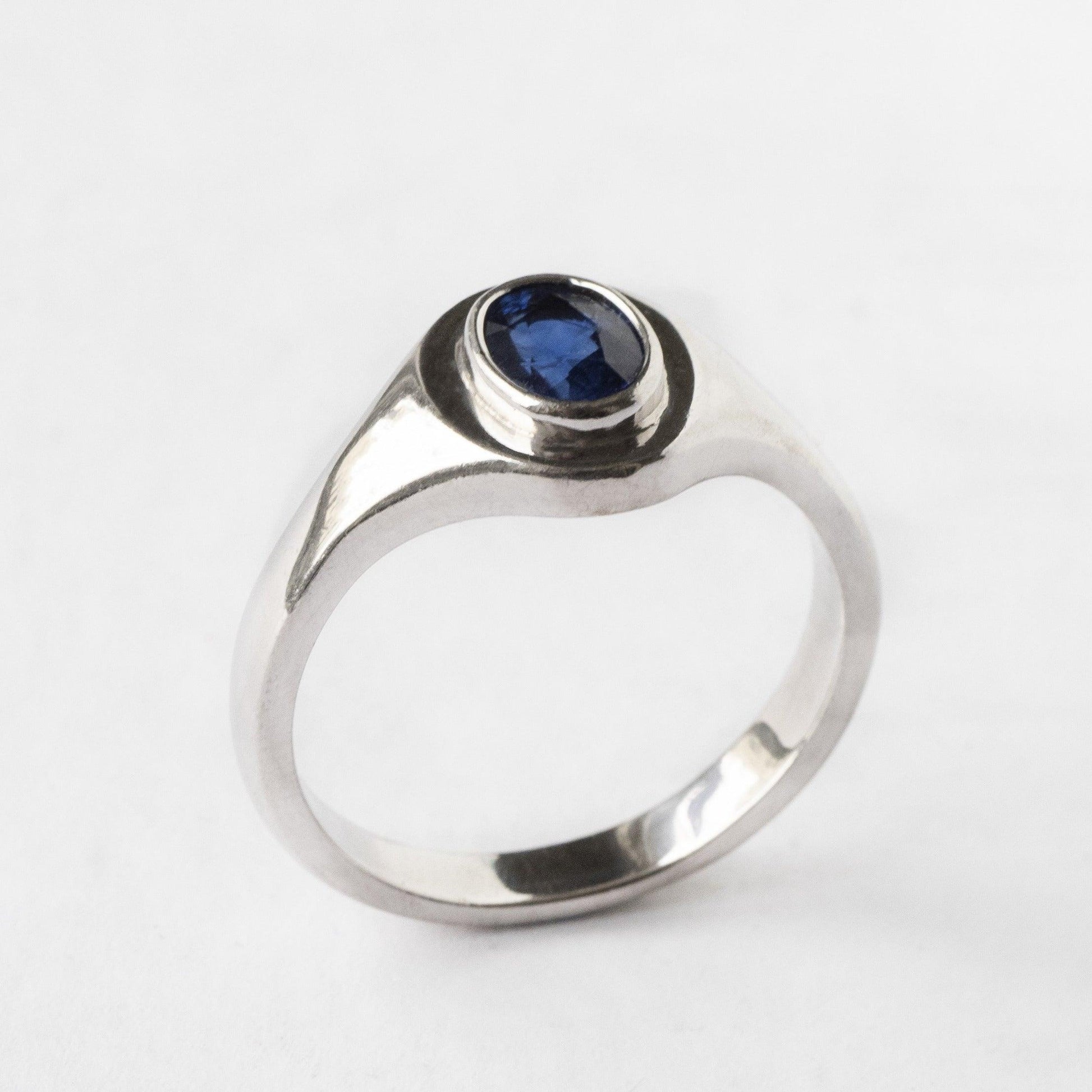 Blauer Herren-Saphirring aus 18 Karat Weißgold GR-4951
