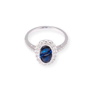 18ct White Gold Oval Shaped Diamond & Blue Sapphire Ring LR-7044 - Minar Jewellers