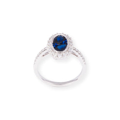 Ring aus 18 Karat Weißgold mit ovalem Diamant und blauem Saphir LR-7044