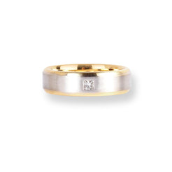 18ct White & Yellow Gold Wedding Band With Satin Finish & Polished Grooved Edges LR-6657 - Minar Jewellers