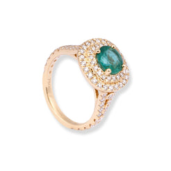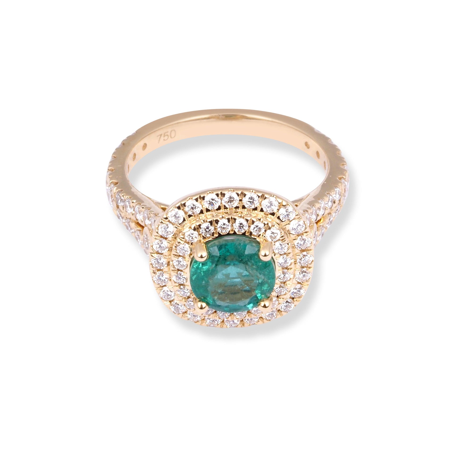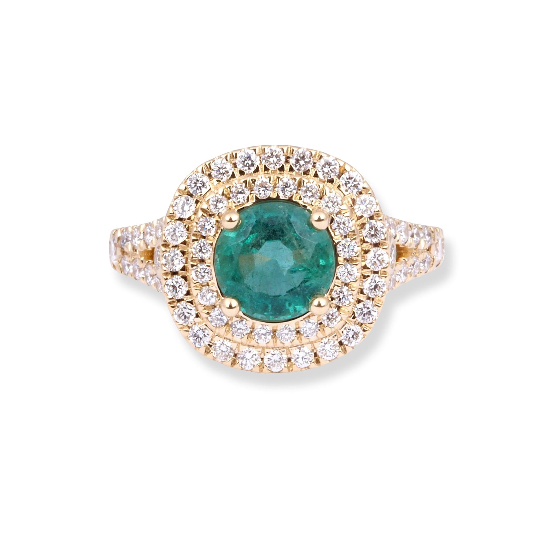 18ct Yellow Gold Diamond & Emerald Ring LR-7027 - Minar Jewellers