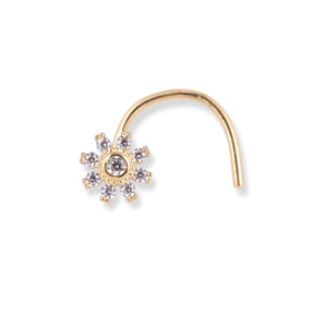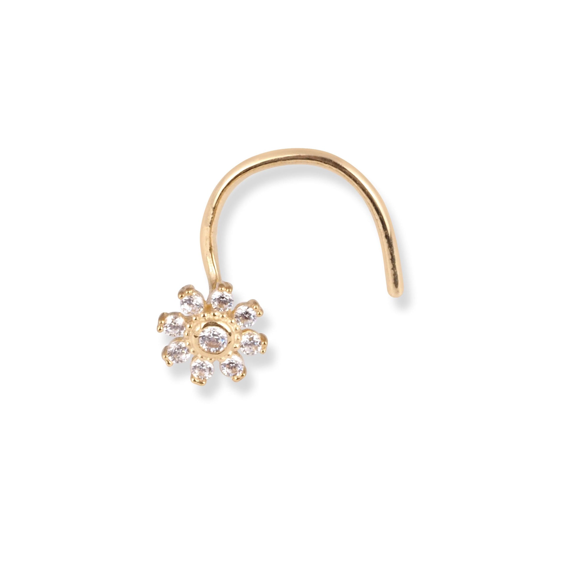 Erleben Sie den zarten Reiz dieses Nasensteckers im Blumendesign aus 18 Karat Gelbgold, ein exquisites Stück, das ei...
