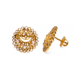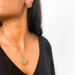 22ct Gold Antiquated Look Pendant, Chain and Earrings with Polki Style Cubic Zirconias (26.8g)P&E-8240 - Minar Jewellers