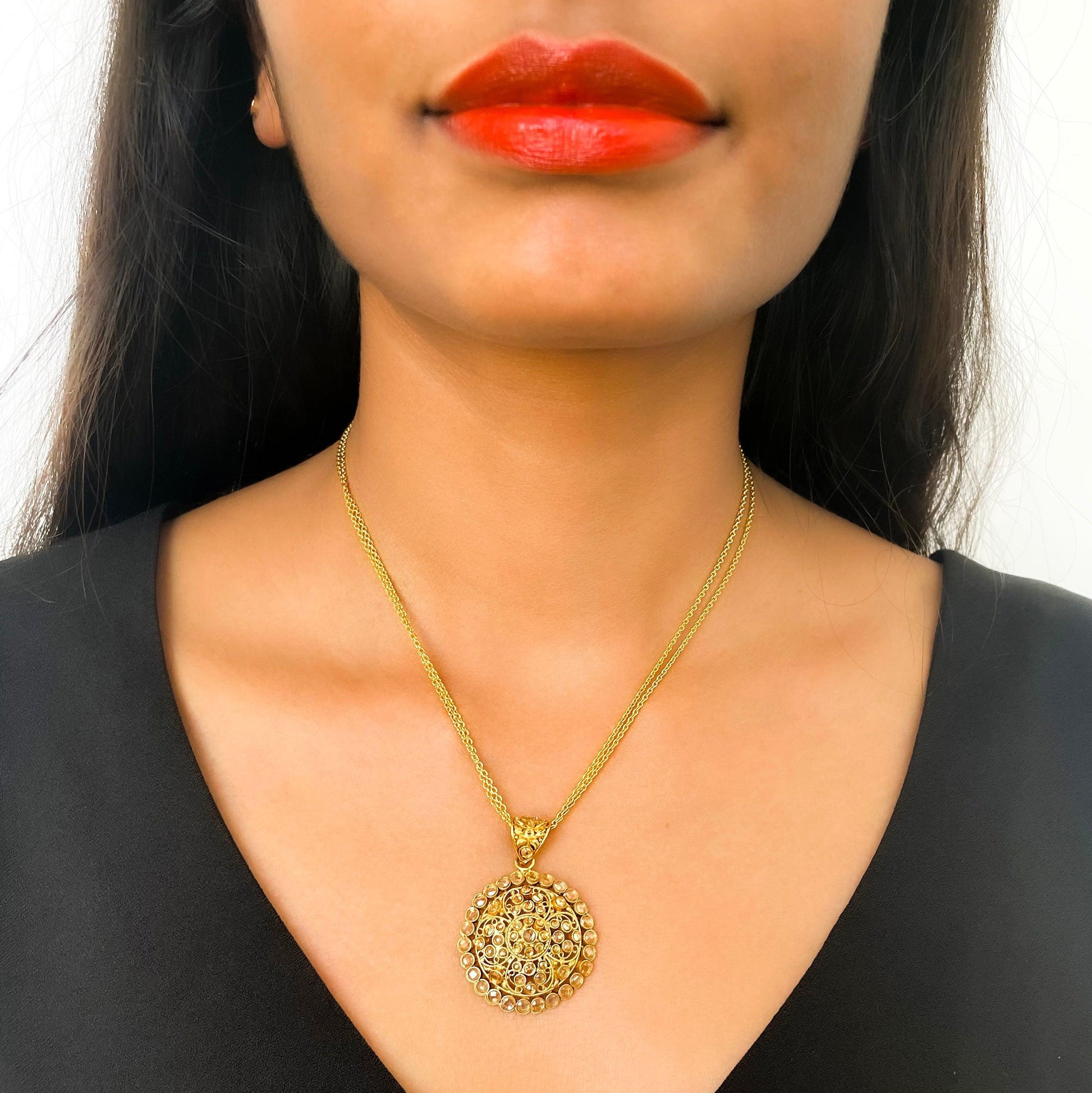 Anhänger, Kette und Ohrringe aus 22 Karat Gold im Antiquitäten-Look mit Zirkonia im Polki-Stil (26,8 g) P&E-8240
