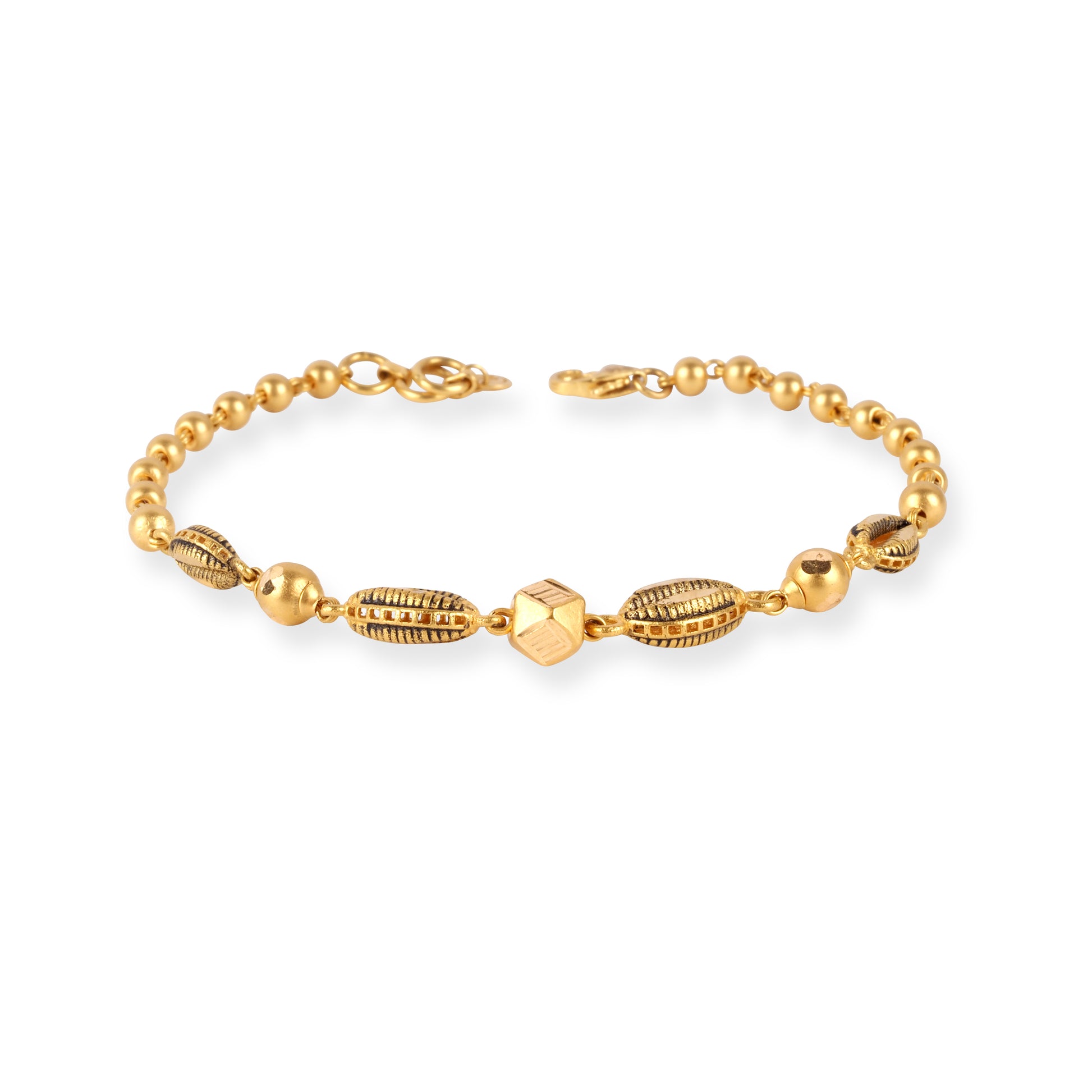 22 Karat Goldarmband mit antikem und gebürstetem Finish und Karabinerverschluss LBR-8718