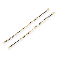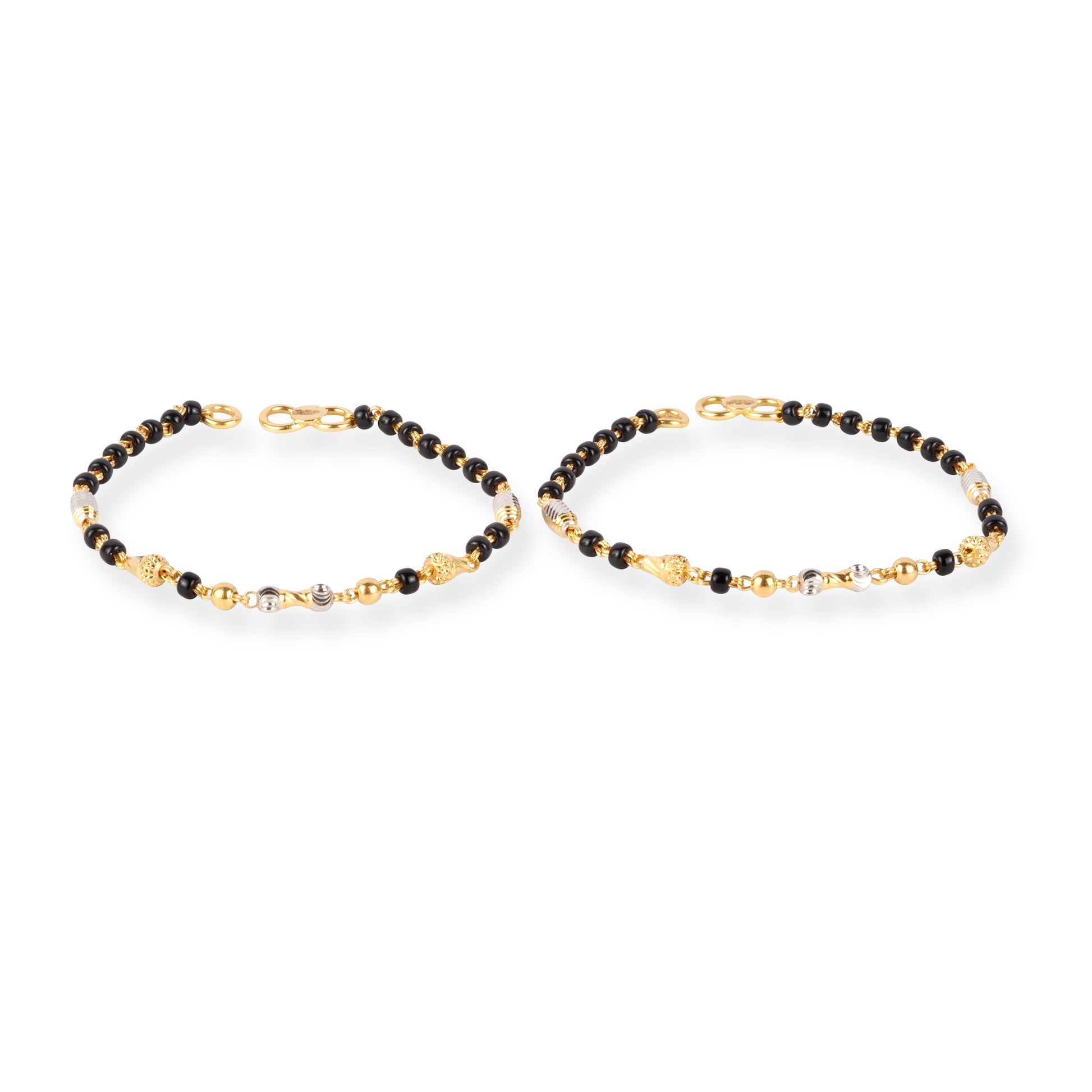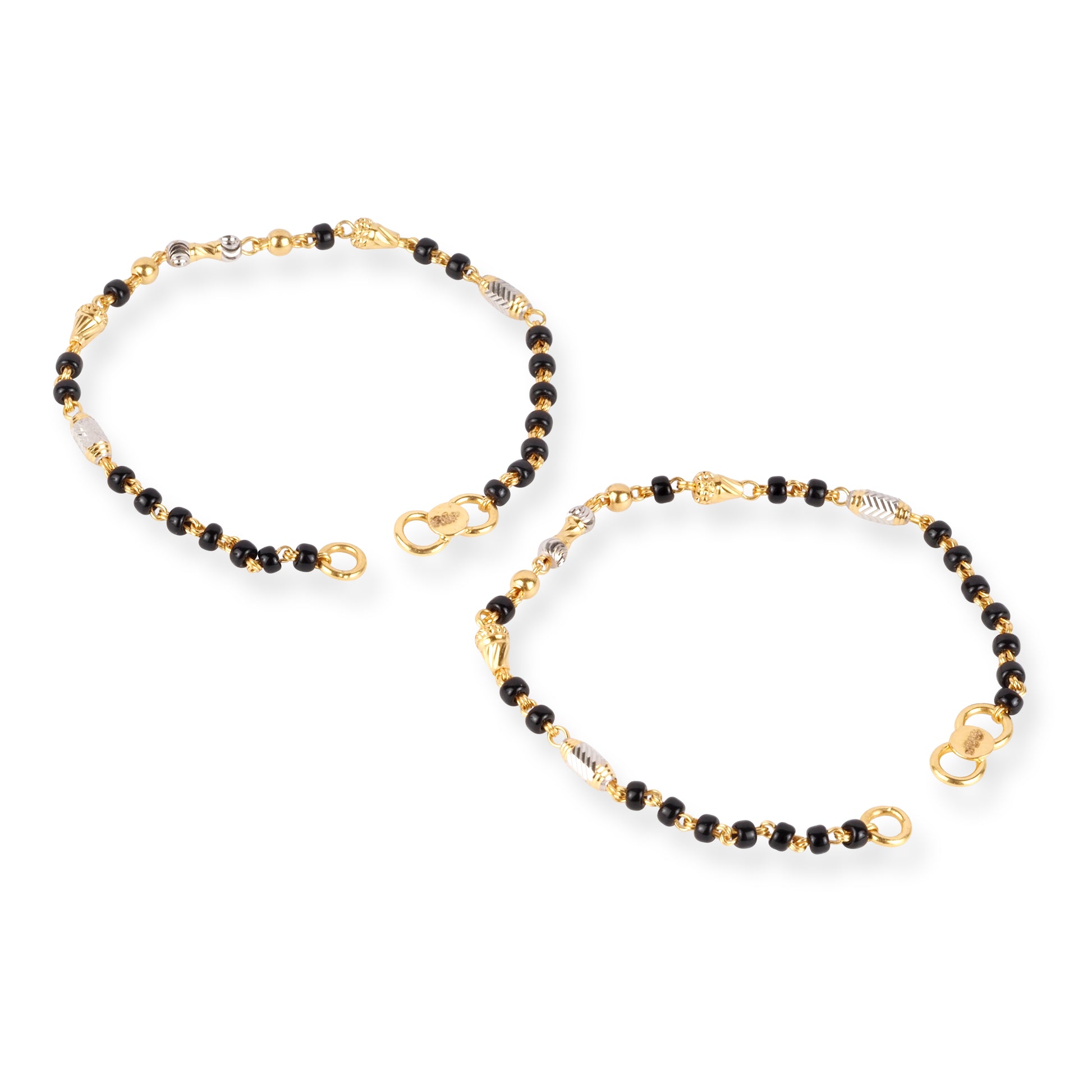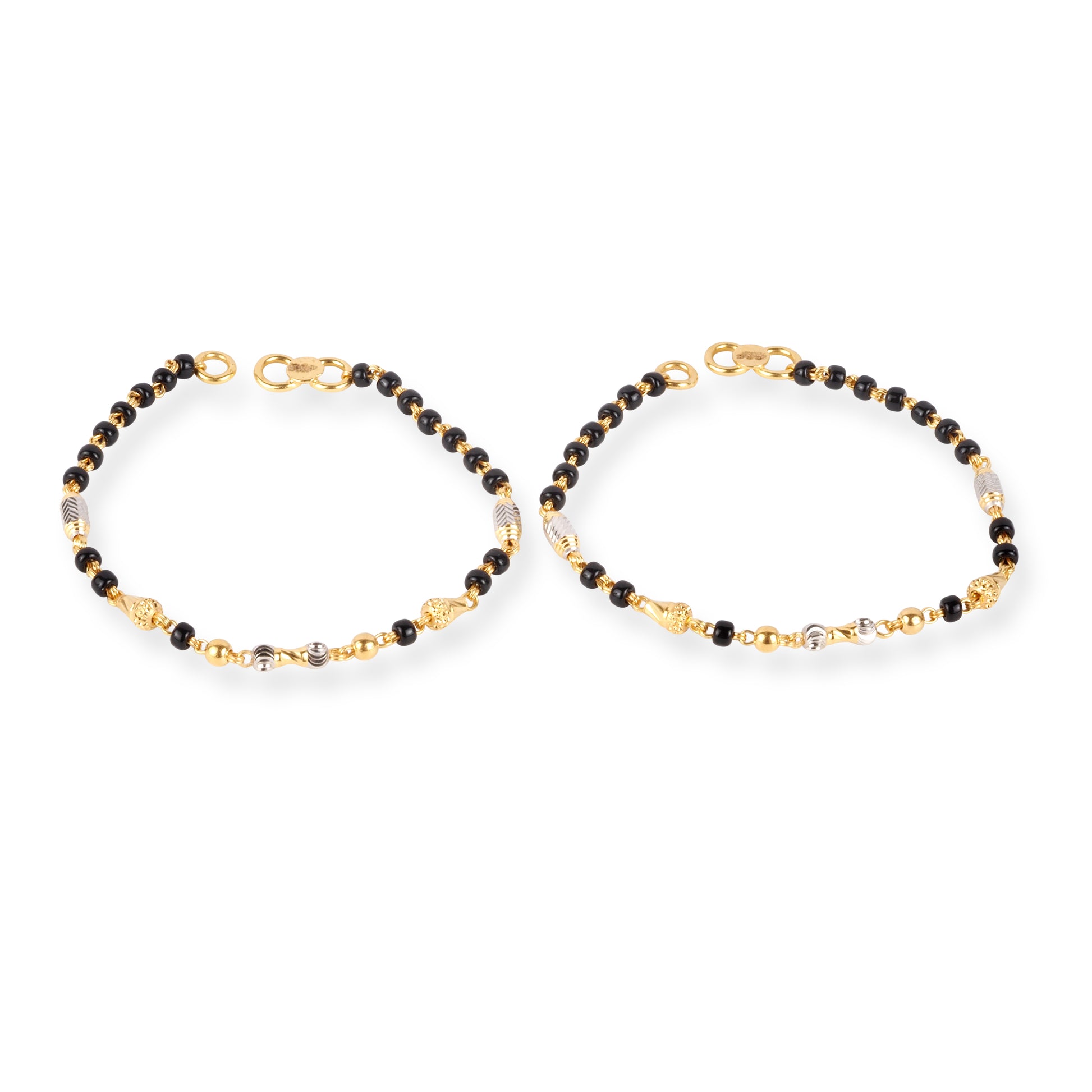 Kinderarmband aus 22 Karat Gold mit schwarzen und rhodinierten Perlen im Diamantschliff und Achterverschluss CBR-8487