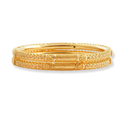 22ct Gold Pair of Hollow Tube Bangles with Filigree Work & Comfort fit Finish B-8586 - Minar Jewellers