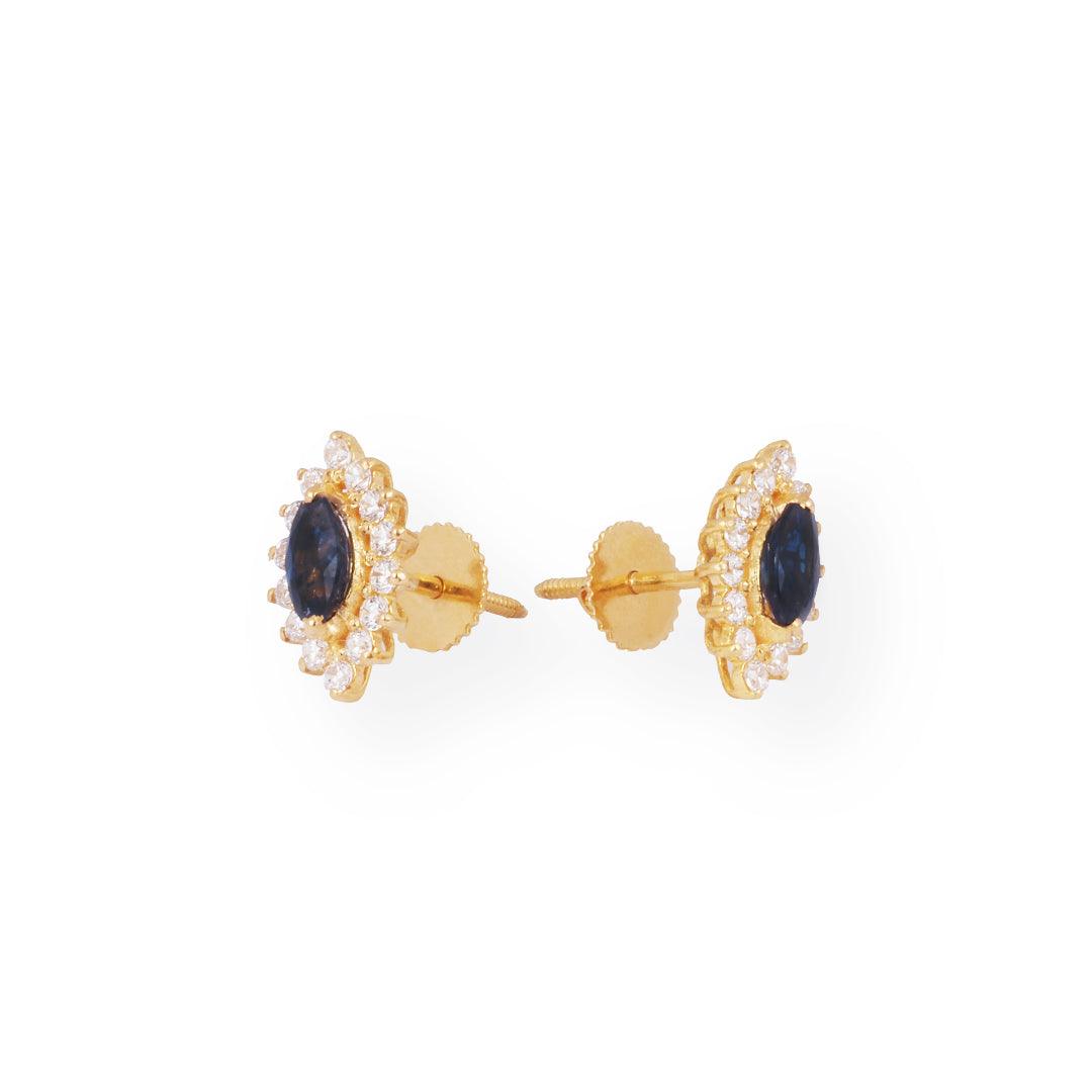 22ct Gold Set in Dark Blue & White Cubic Zirconia Stones (Pendant + Chain + Earrings)-8637 - Minar Jewellers