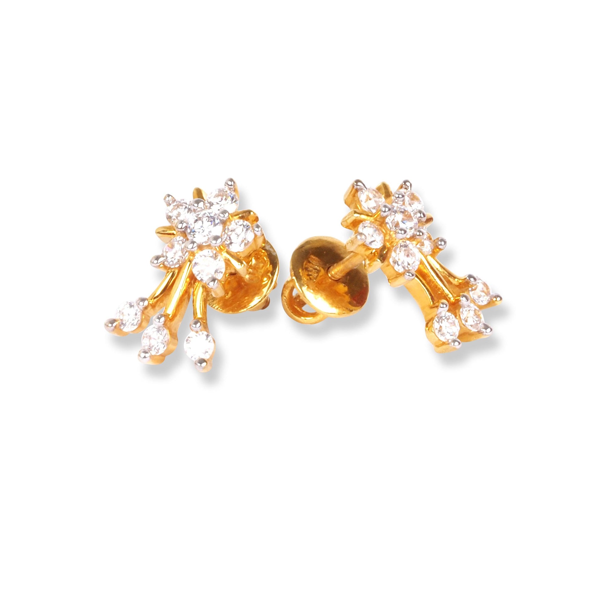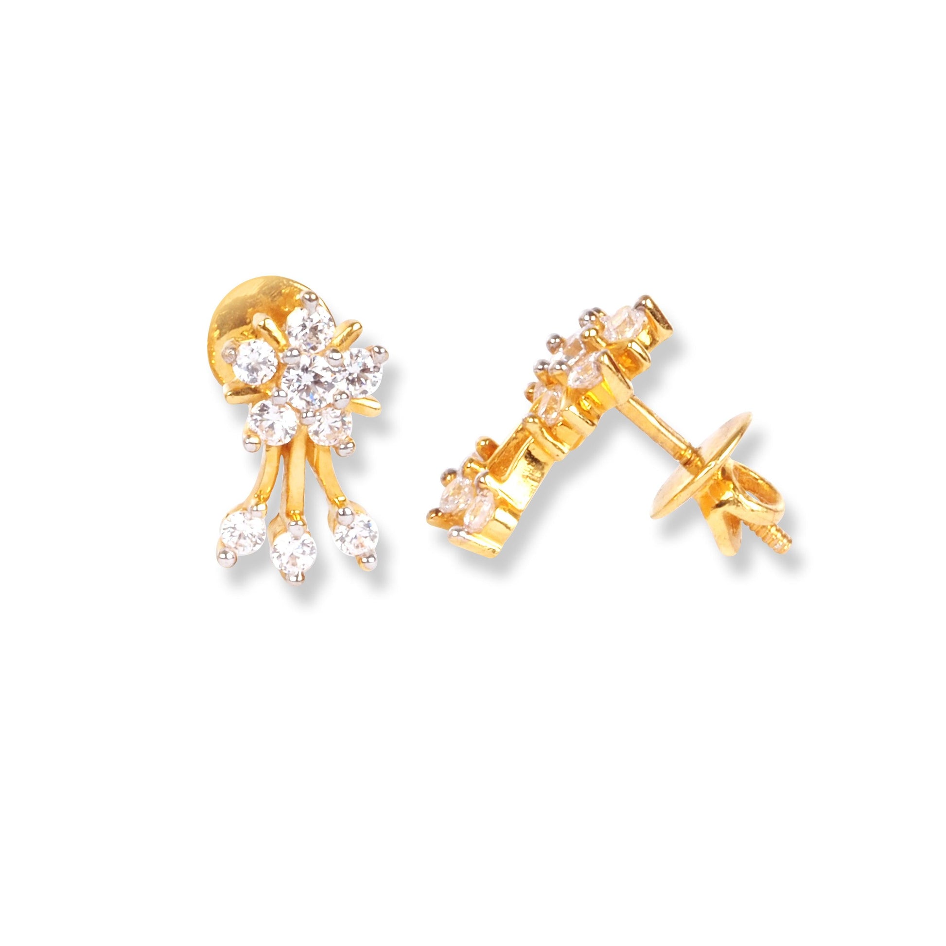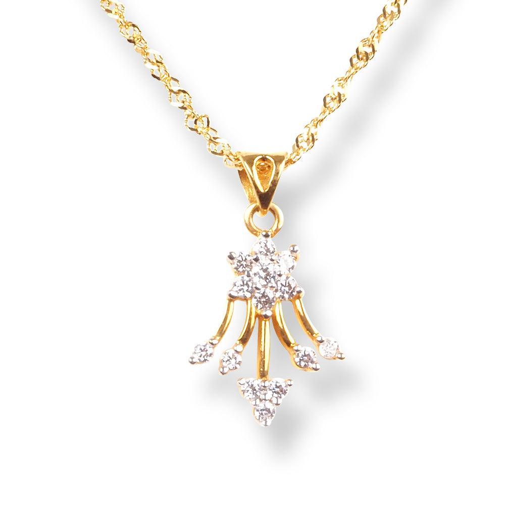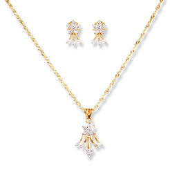 22ct Gold Set with Cubic Zirconia Stones (Pendant + Chain + Stud Earrings) - Minar Jewellers