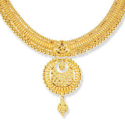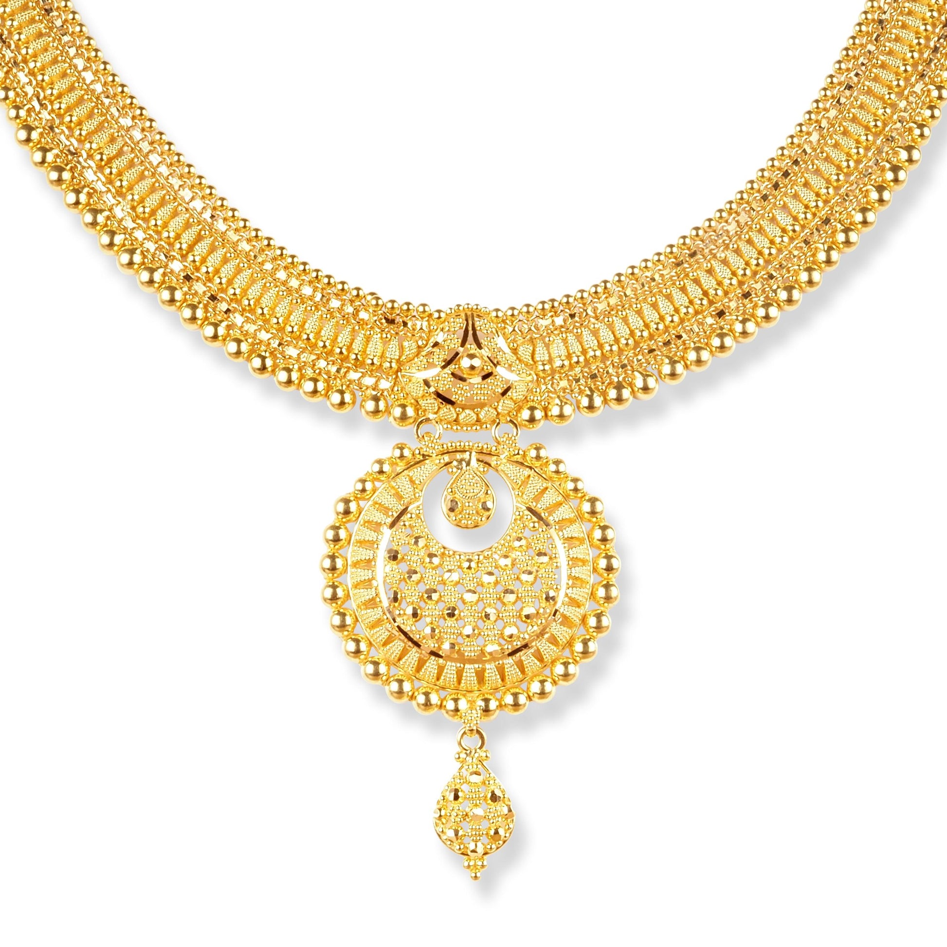 22ct Gold Set with Filigree Work (Necklace + Drop Earrings) N-8169 E-8169 - Minar Jewellers