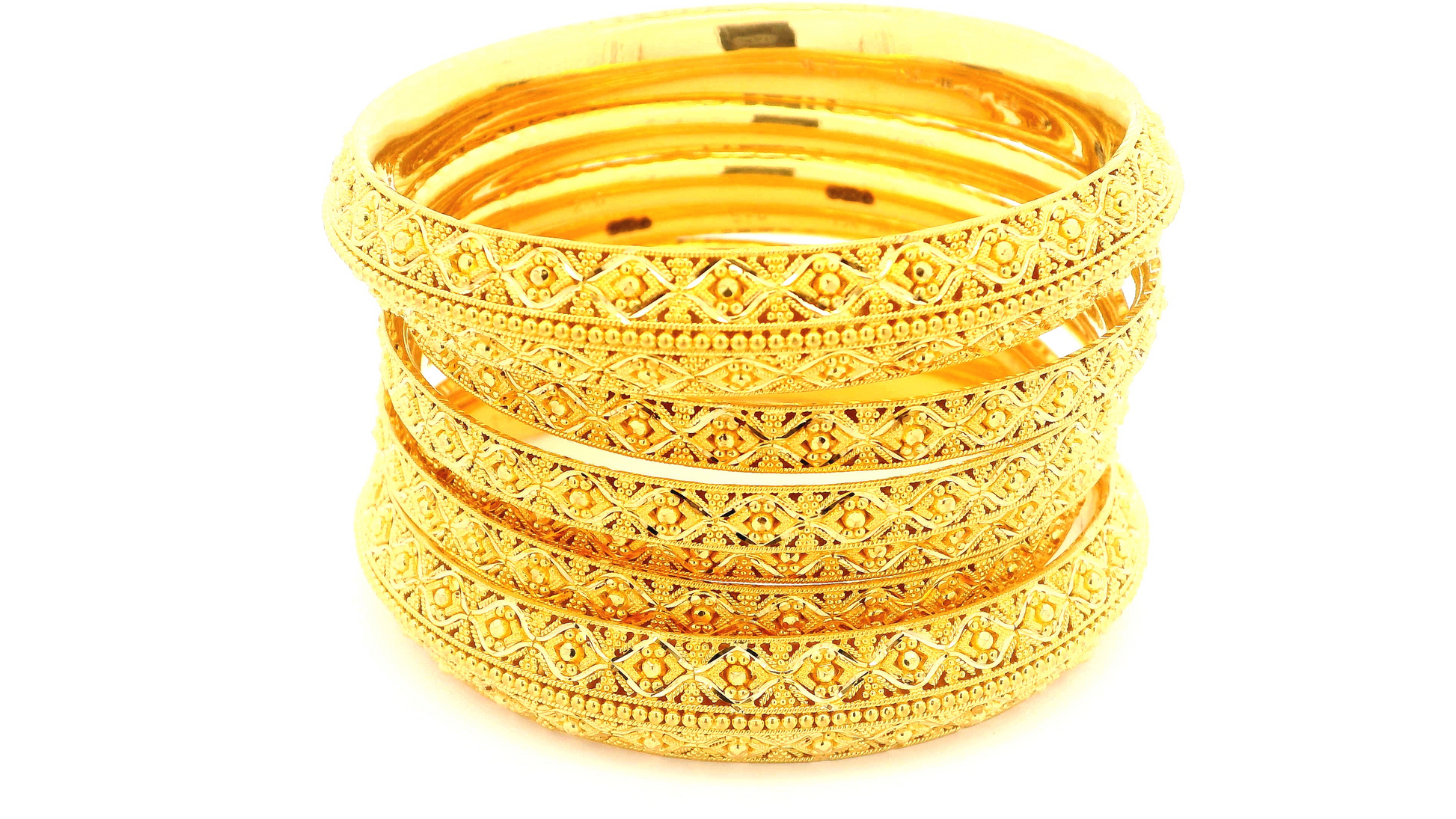 Filigrane Armreifen aus 22 Karat Gelbgold, 6er-Set – bequeme Passform, elegantes Design