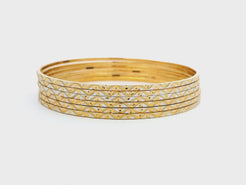 Erleben Sie die perfekte Verbindung aus traditioneller Handwerkskunst und modernem Stil mit unserem Set aus sechs Armreifen aus 22 Karat Gold. Diese exquisiten Stücke bestechen durch ihr zartes Milgrain-Design, das Ihrem Handgelenk einen Hauch von Vintage-Charme verleiht. Die Rhodinierung sorgt für ein atemberaubendes zweifarbiges Finish und macht diese Armreifen vielseitig genug, um jedes Outfit und jeden Anlass zu ergänzen.