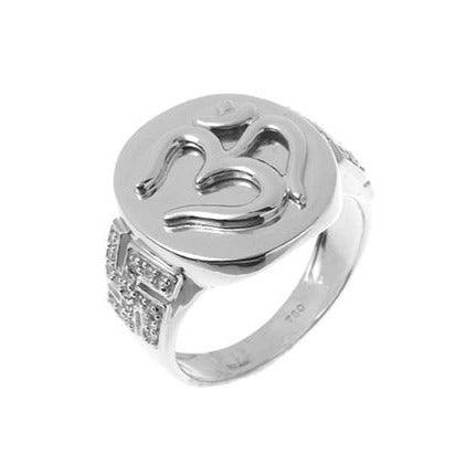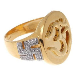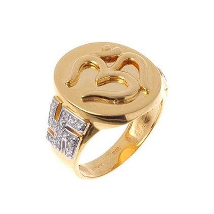 18ct Gold / 22ct Gold Cubic Zirconia Gents Ring with Om and Saathiya Symbols GR15126 - Minar Jewellers