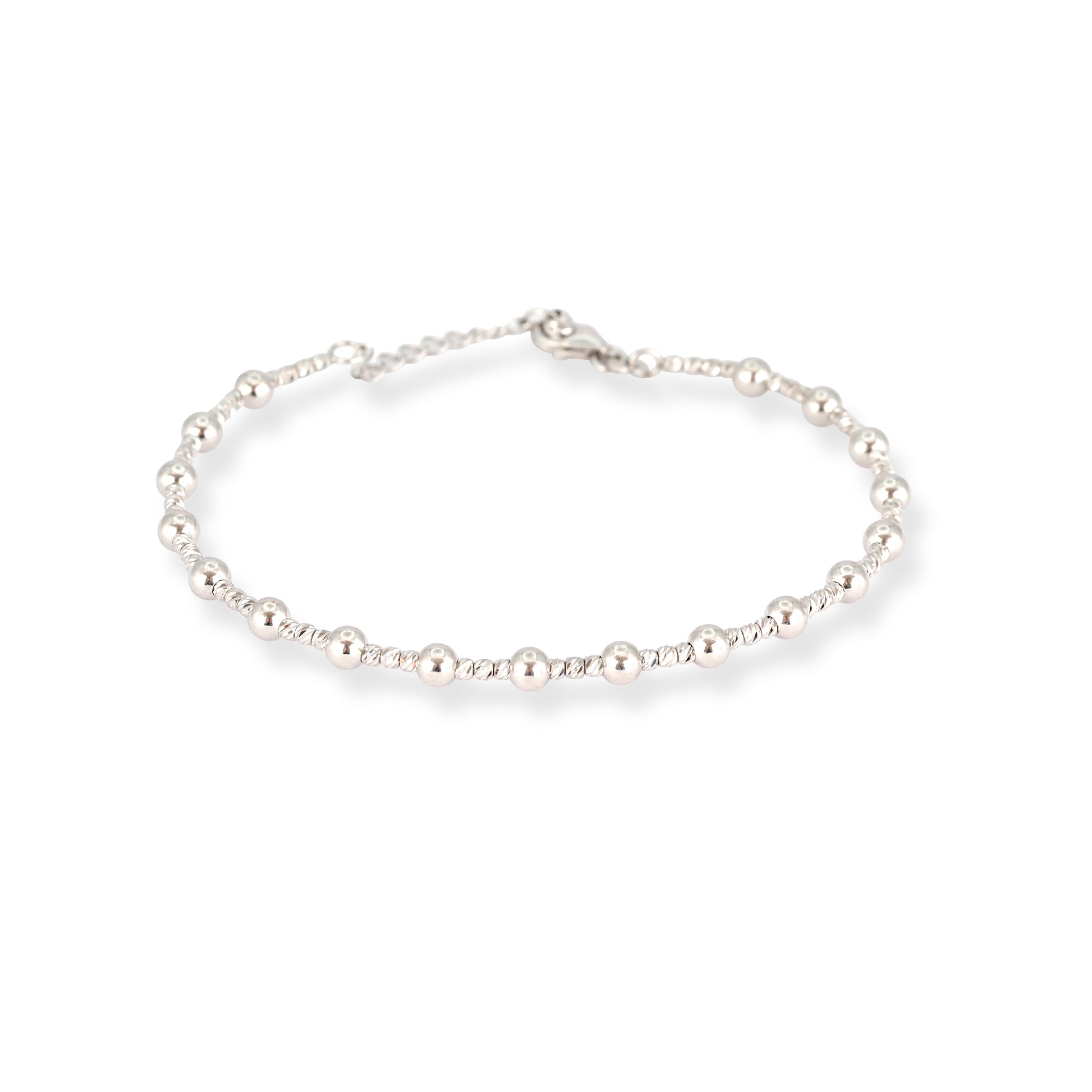 18ct White Gold Bead Bangle – Polished & Diamond Cut Bead Style