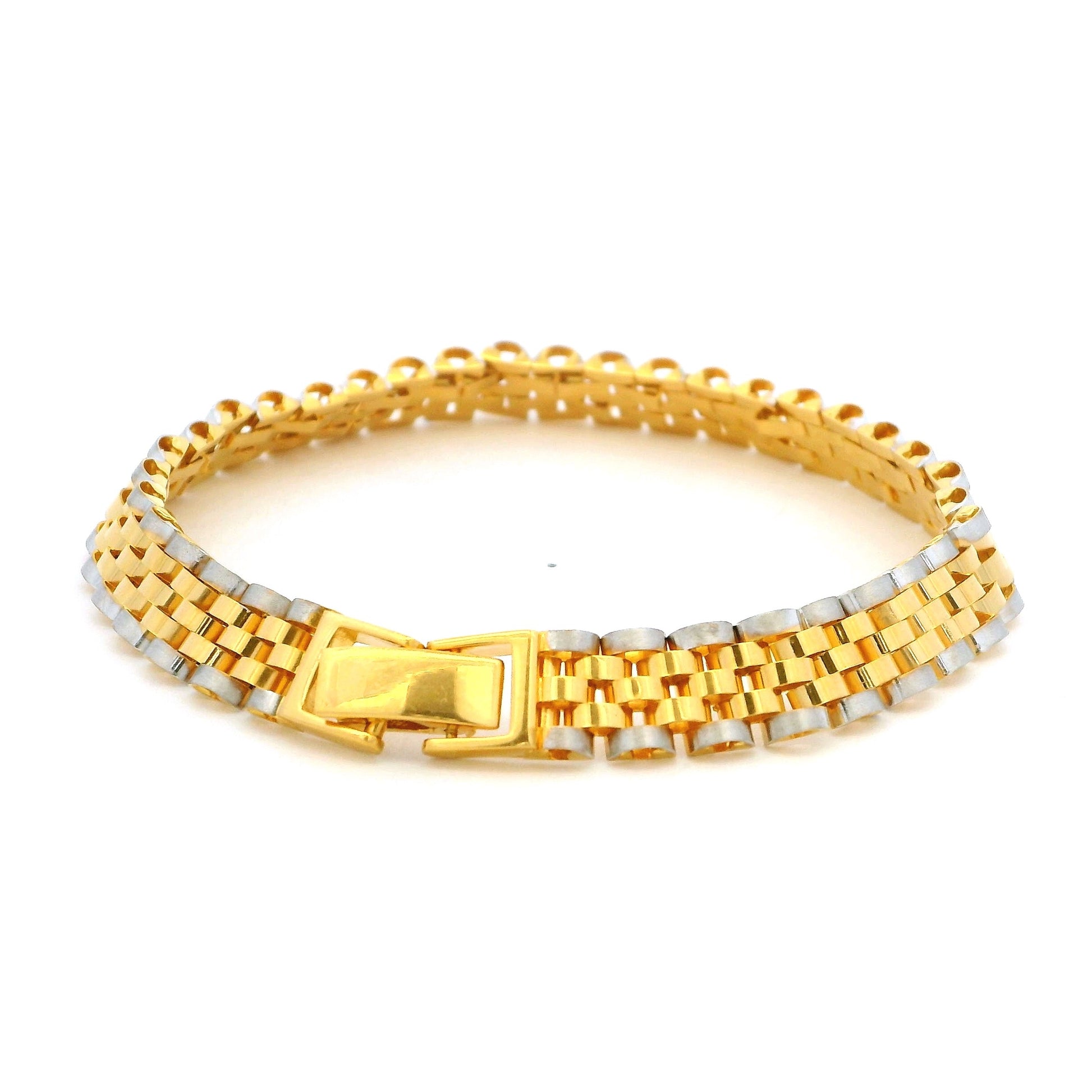22ct Gold Men’s Link Bracelet with Rhodium Plating – Semi Hollow Design