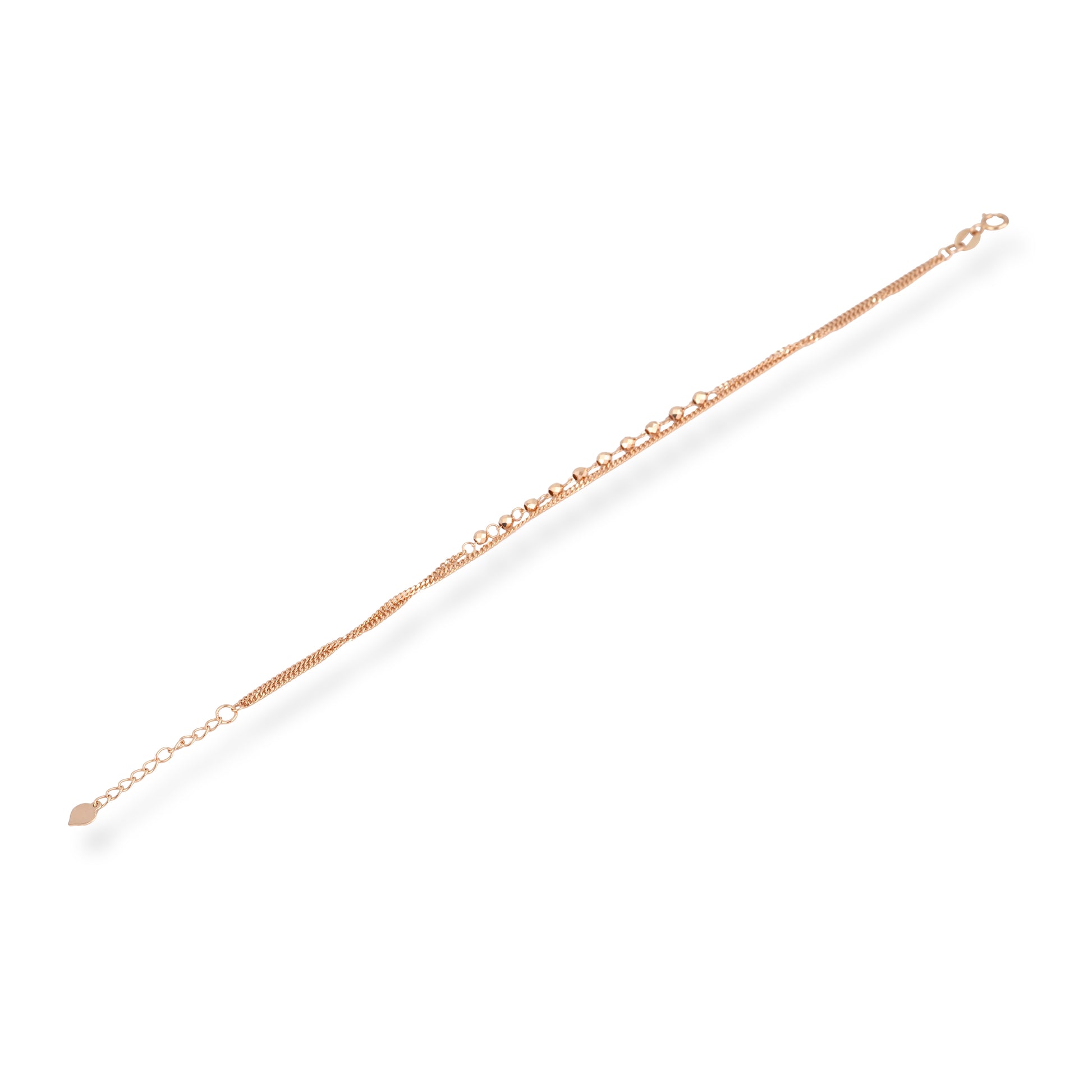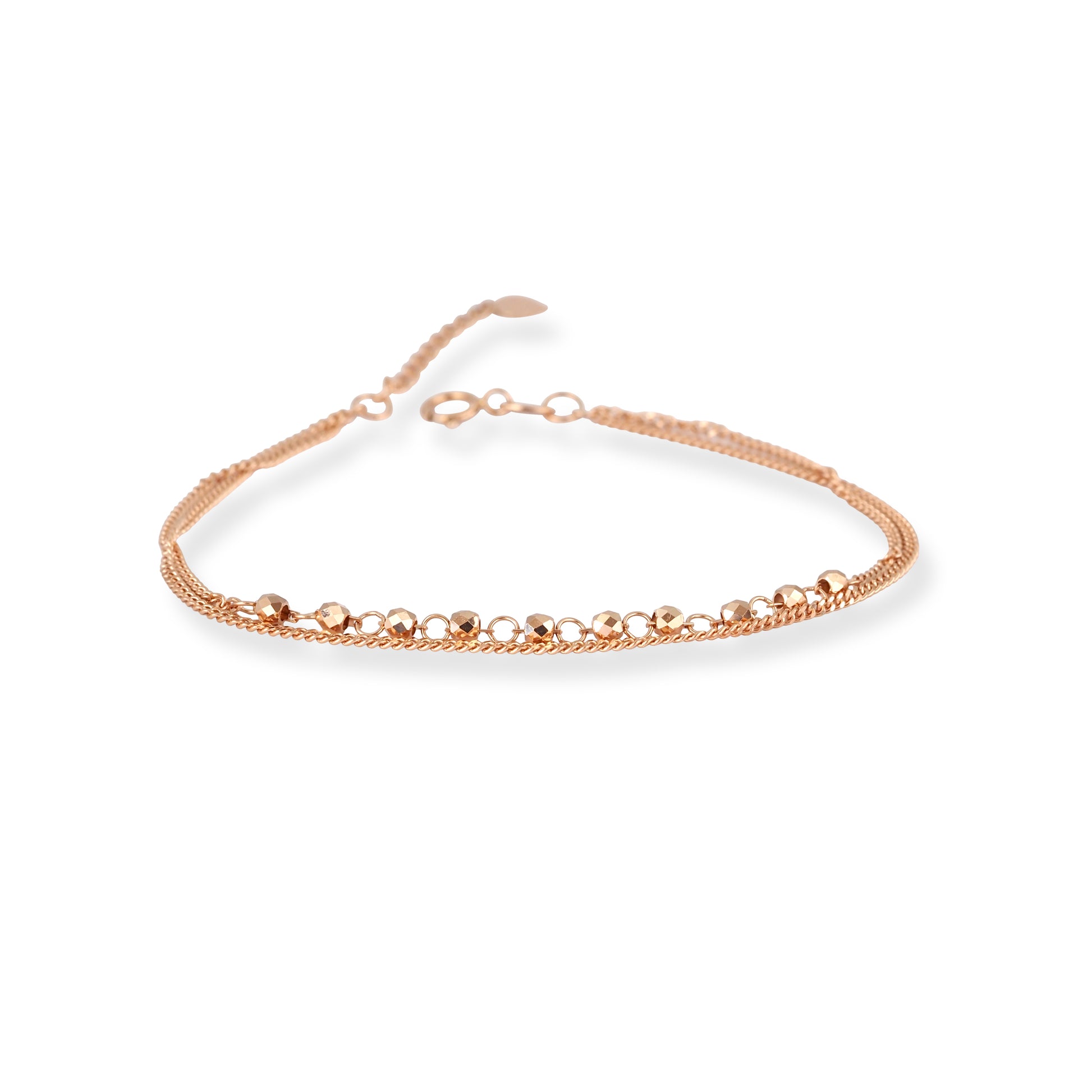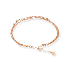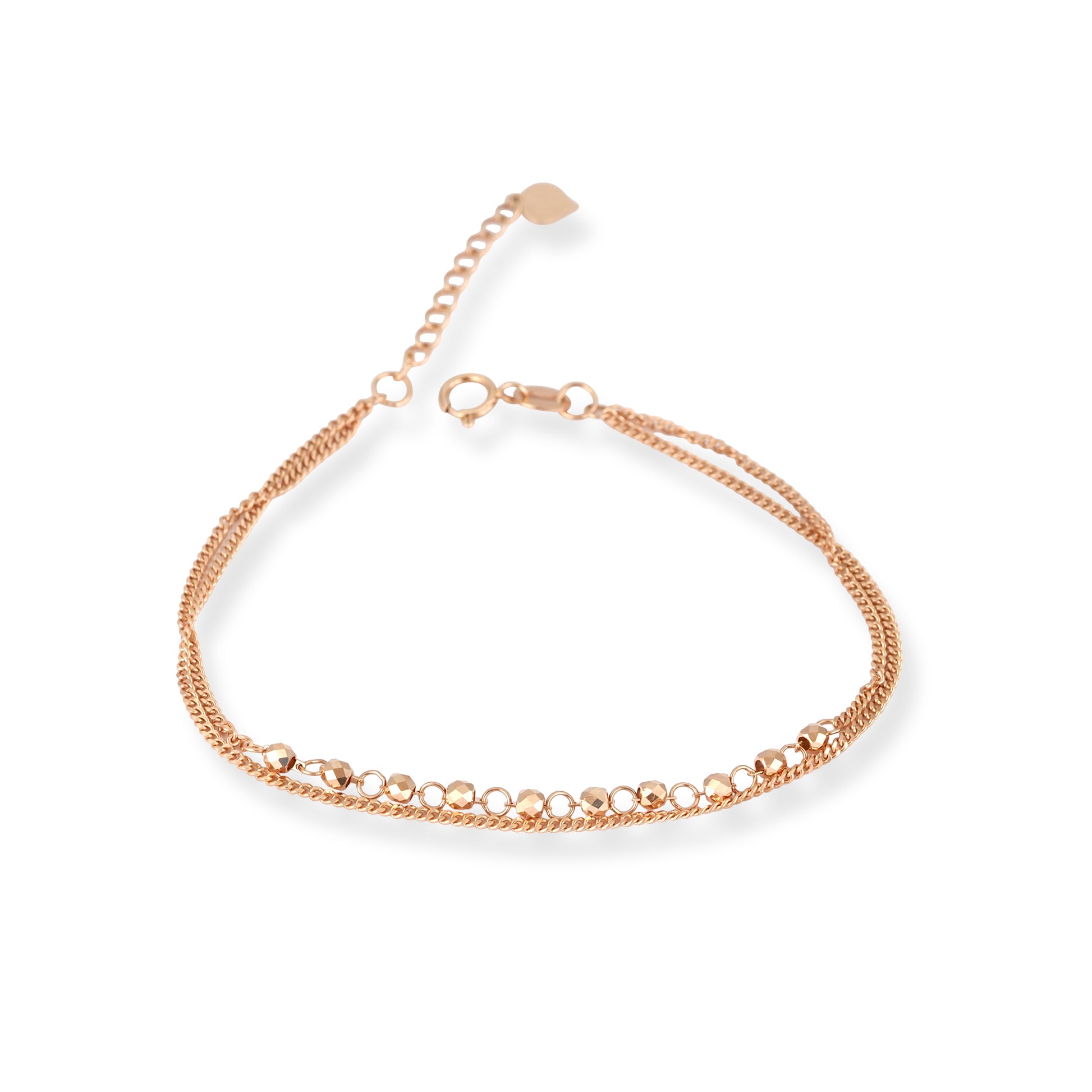 18ct Rose Gold Delicate Double Chain Bracelet with Diamond Cut Beads