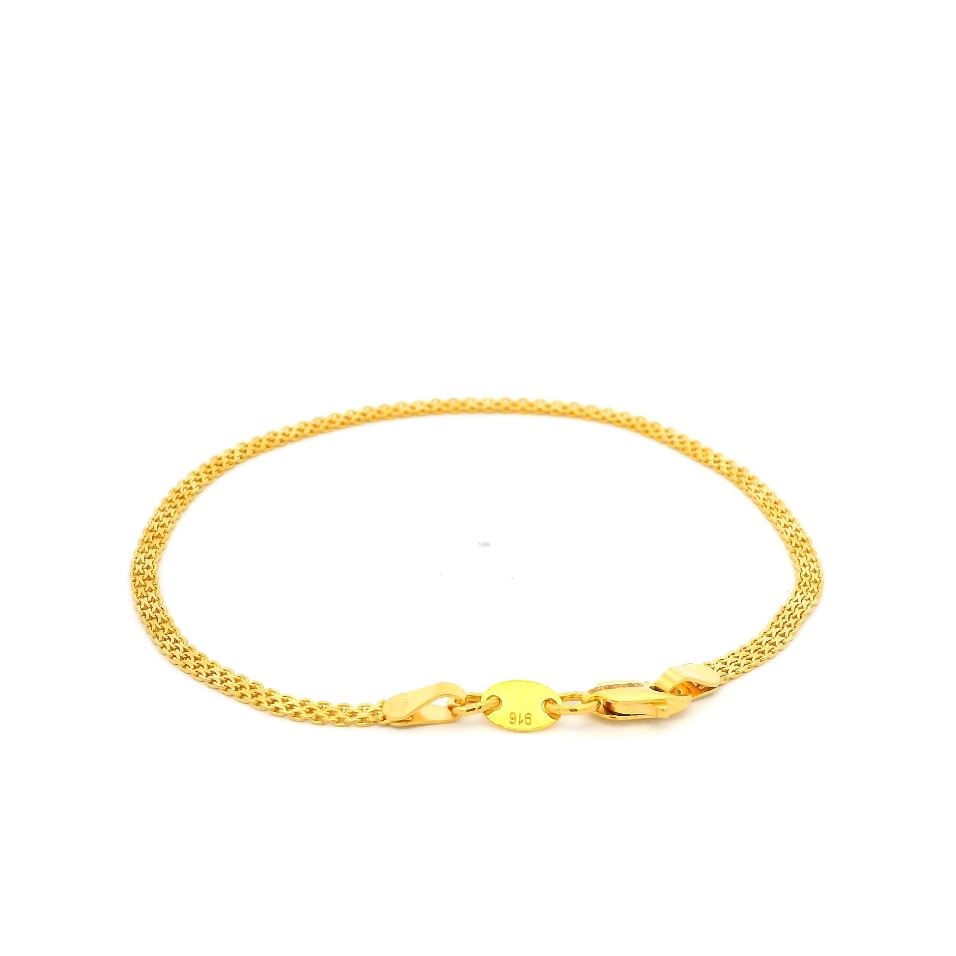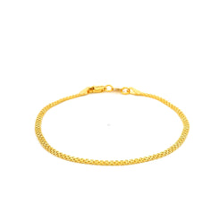 This 22ct gold bracelet for women showcases a refined fine-chain design with a clean, minimalist finish, making it an elegant choice for everyday wear. Crafted from pure 22ct yellow gold, it offers a warm, radiant glow that complements any outfit with subtle sophistication.