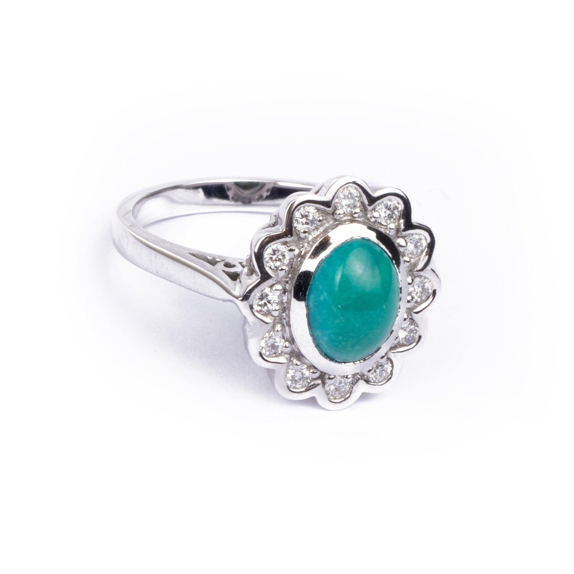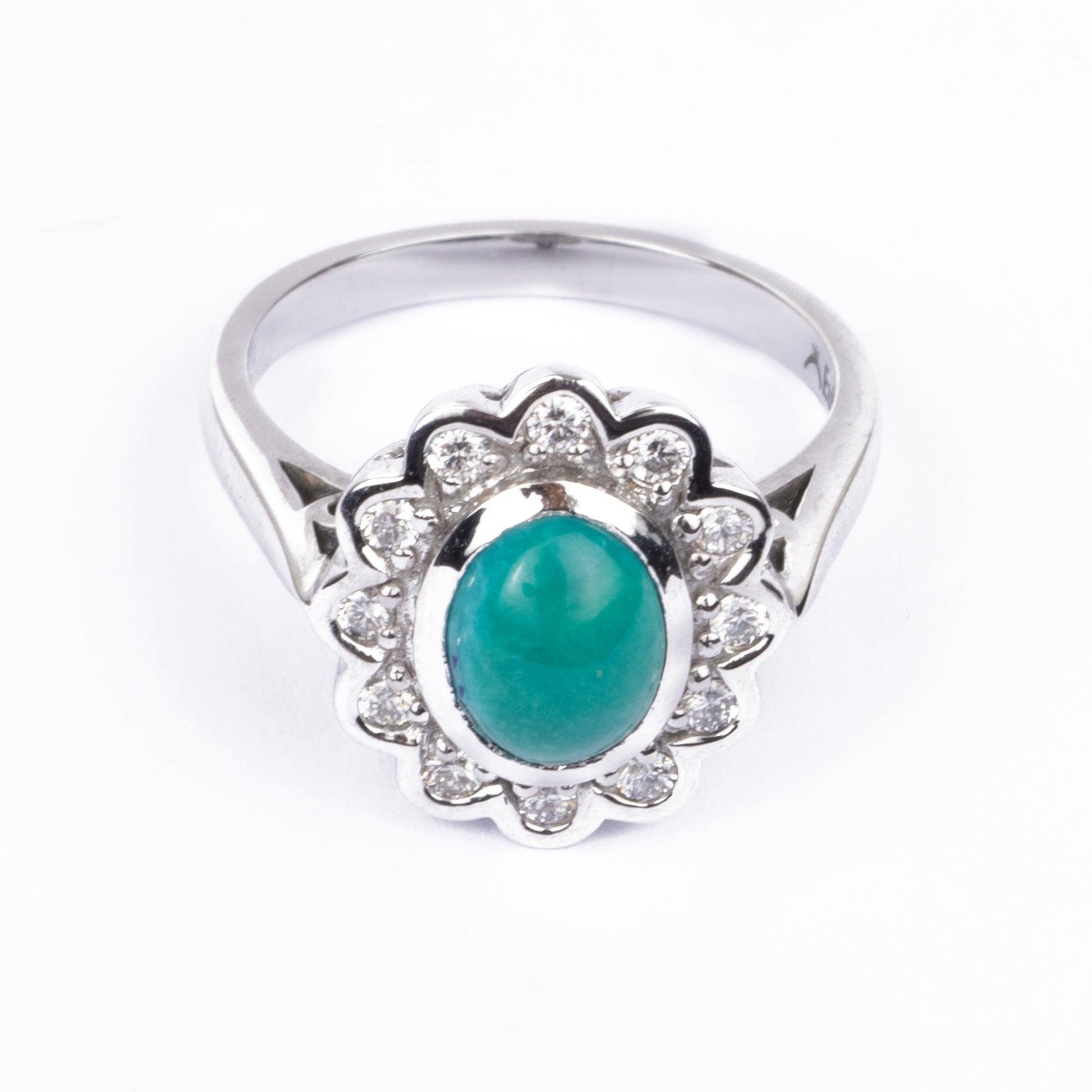 Cocktailring aus 18 Karat Weißgold mit Diamanten und Türkis LR-2971