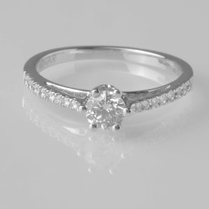 Produktcode: R034064 - Erhältlich in Größe K - Verlobungsring mit einem runden Brillanten in der Mitte und 24 runden Brillanten auf den Schultern - Anzahl: 25 | Schliff: Runder Brillant | Gesamtkarat: 0,50 ct - 18 Karat Gold | 75 % Goldreinheit - Lieferung mit Geschenkbox