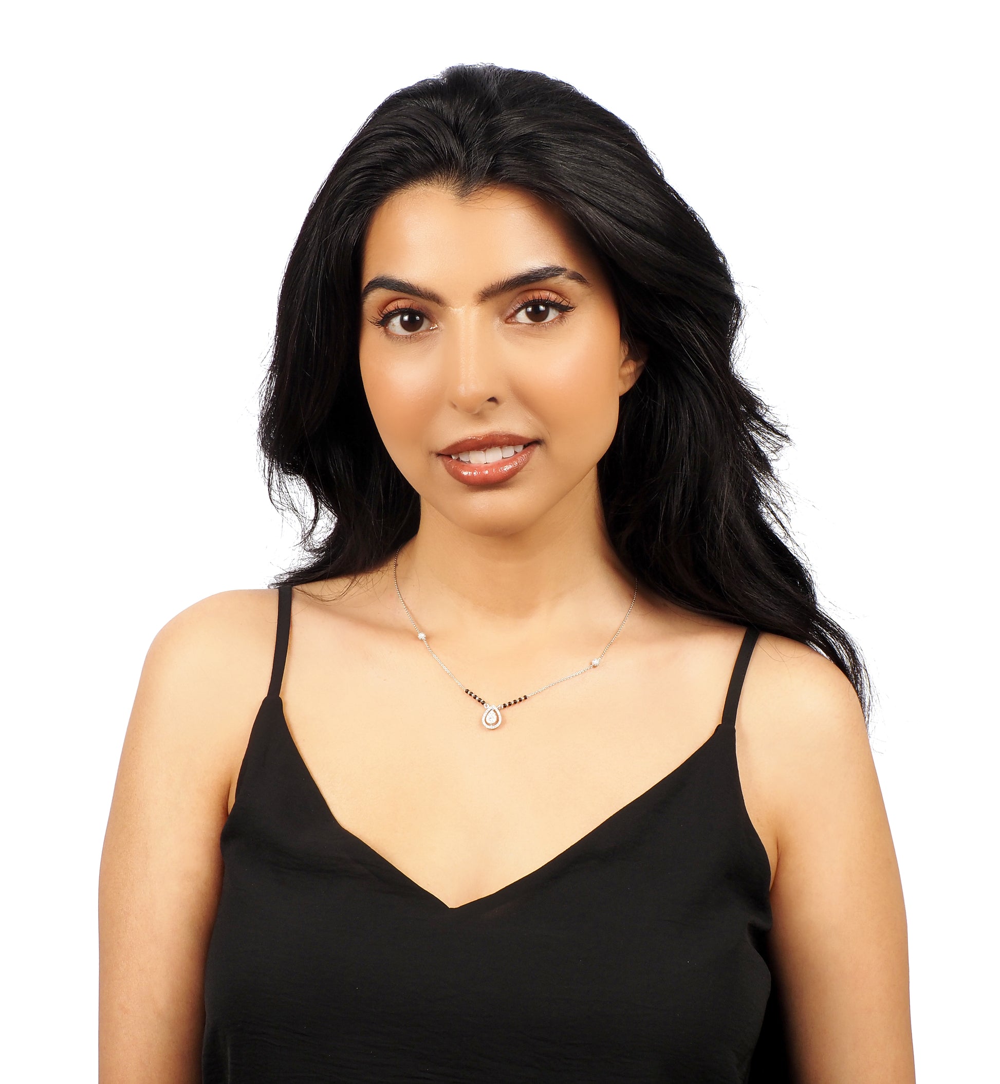 18ct White Gold Diamond Teardrop Mangalsutra Necklace with Black Beads