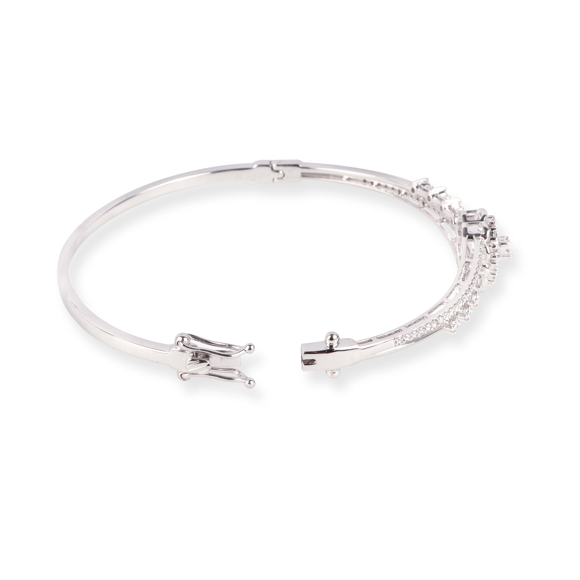 Verwöhnen Sie sich mit dem exquisiten Charme dieses 18 Karat Weißgold-Armreifs mit Diamanten , der zeitlose Eleganz und Raffinesse verkörpert. Der präzise gefertigte Armreif ist mit funkelnden Diamanten besetzt, die das Licht wunderschön einfangen und ihn zum perfekten Accessoire für jeden Anlass machen. Die luxuriöse Weißgoldfassung verstärkt das Funkeln der Diamanten und verleiht ihm einen klassischen und zugleich modernen Look, der jedes Outfit perfekt ergänzt.