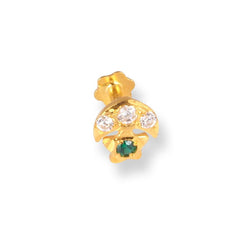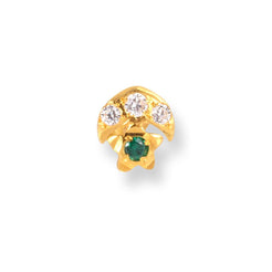 18ct Yellow Gold Screw Back Crescent and Star Nose Stud with Three white & One Green Cubic Zirconia Stones NS-5140 - Minar Jewellers