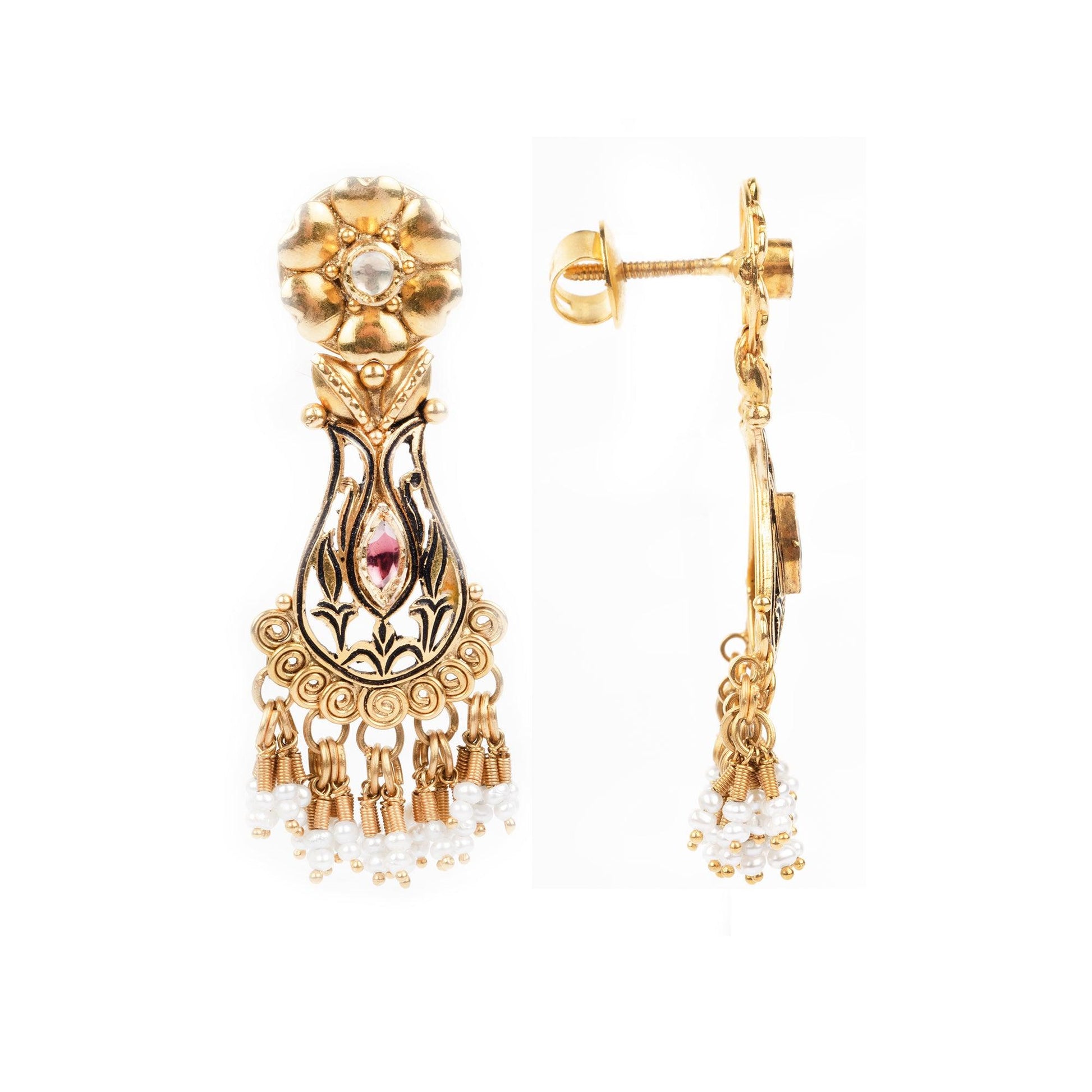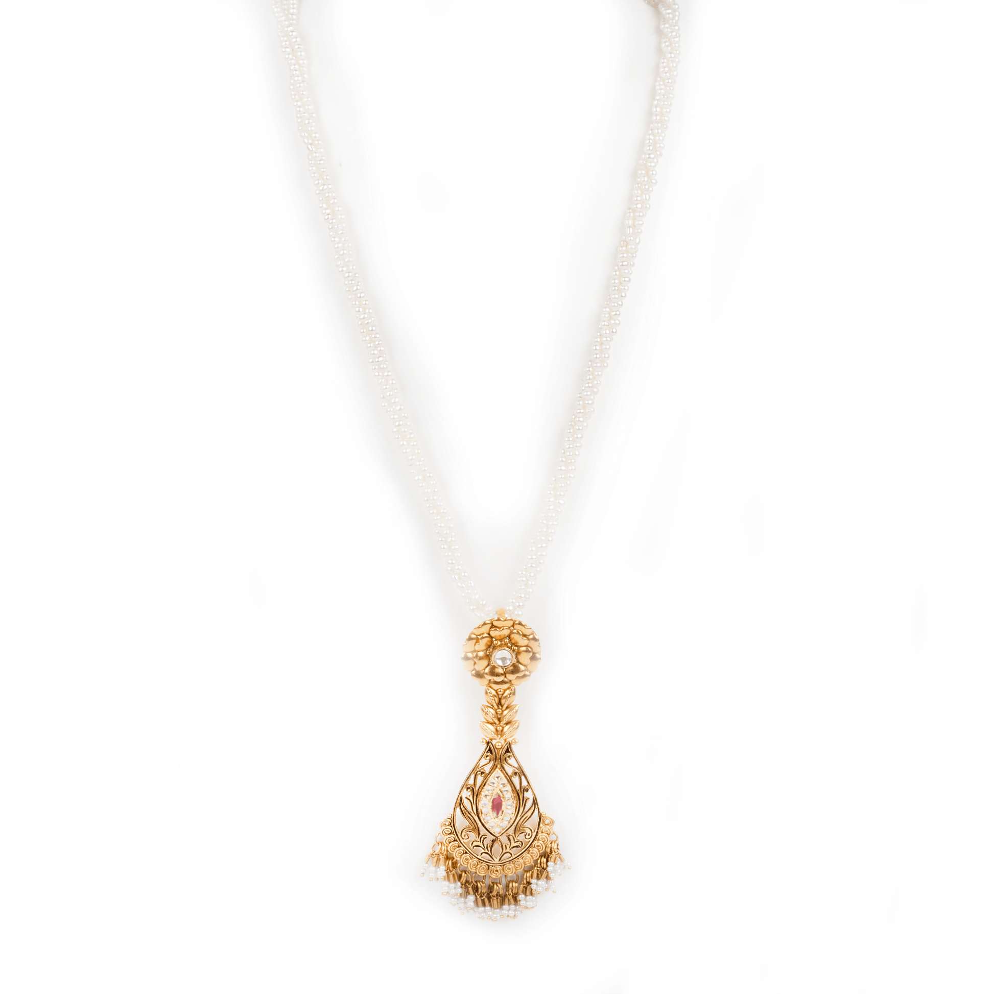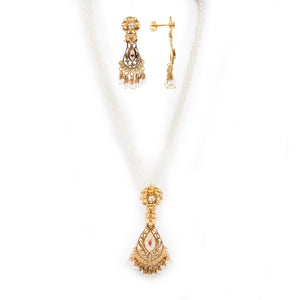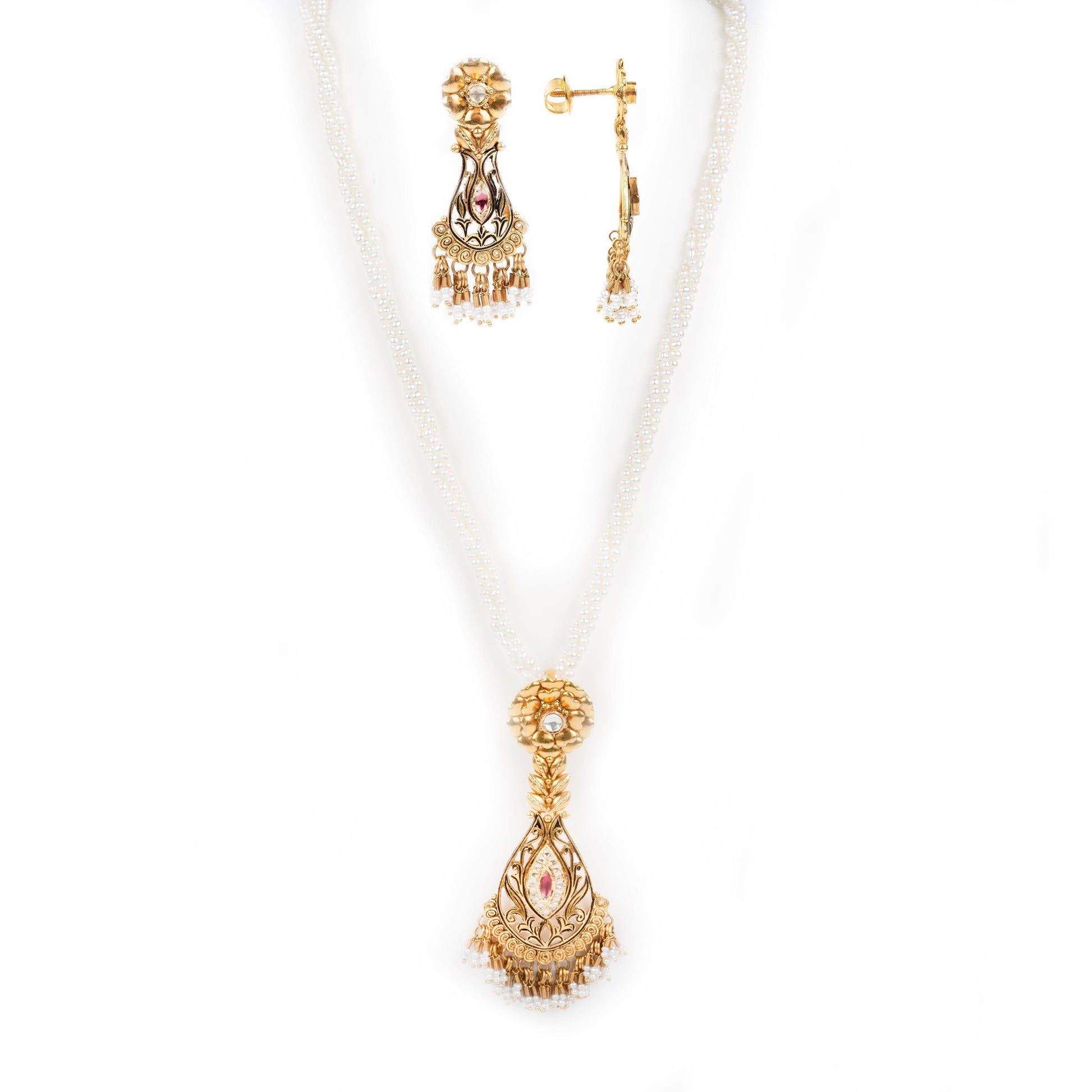 22ct Gold Antiquated Look Necklace, Pendant and Earrings set with Pearls (37.6g) N&P&E-4607 - Minar Jewellers