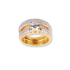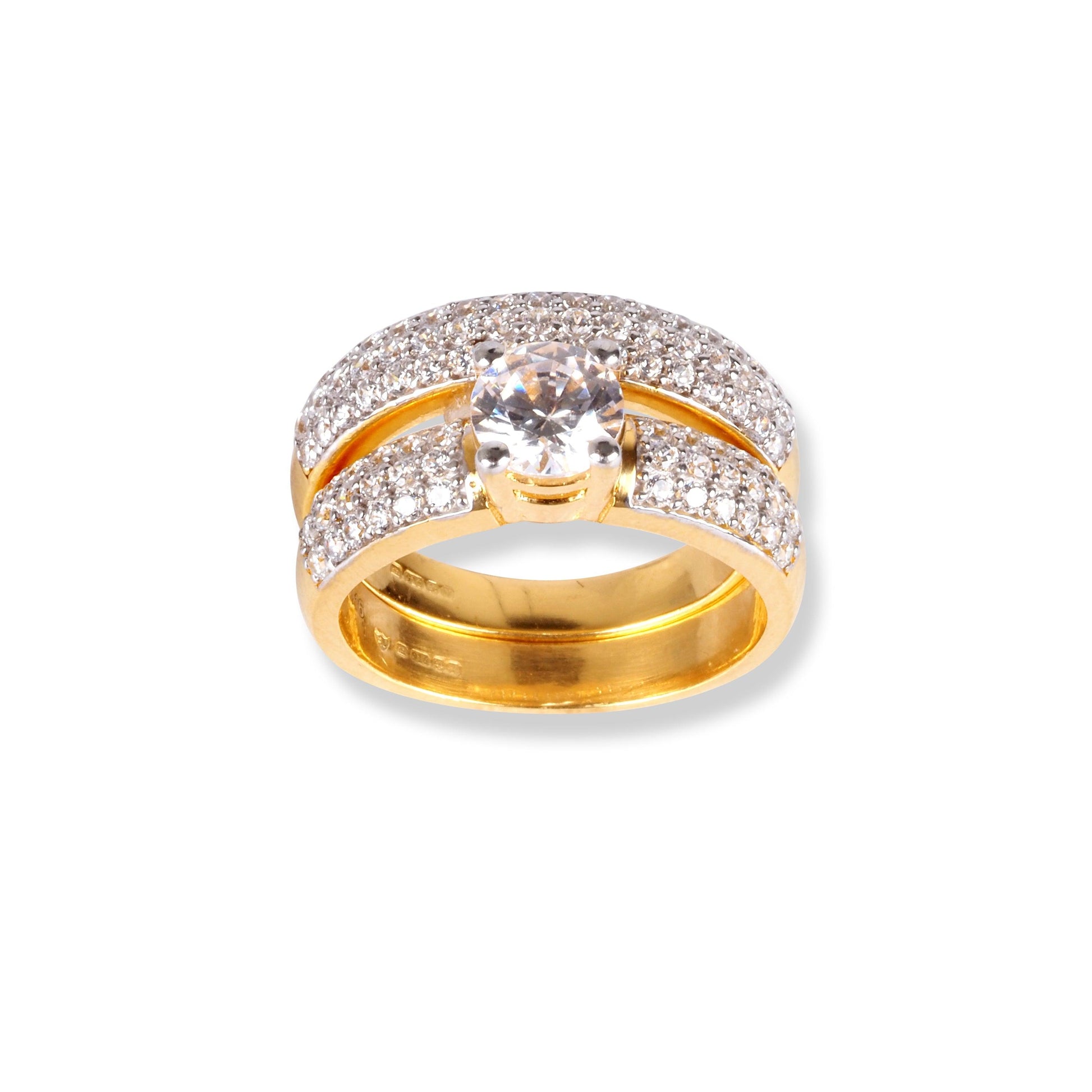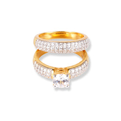 22ct Gold Swarovski Zirconia Engagement Ring and Wedding Band Suite LR-6630 - Minar Jewellers