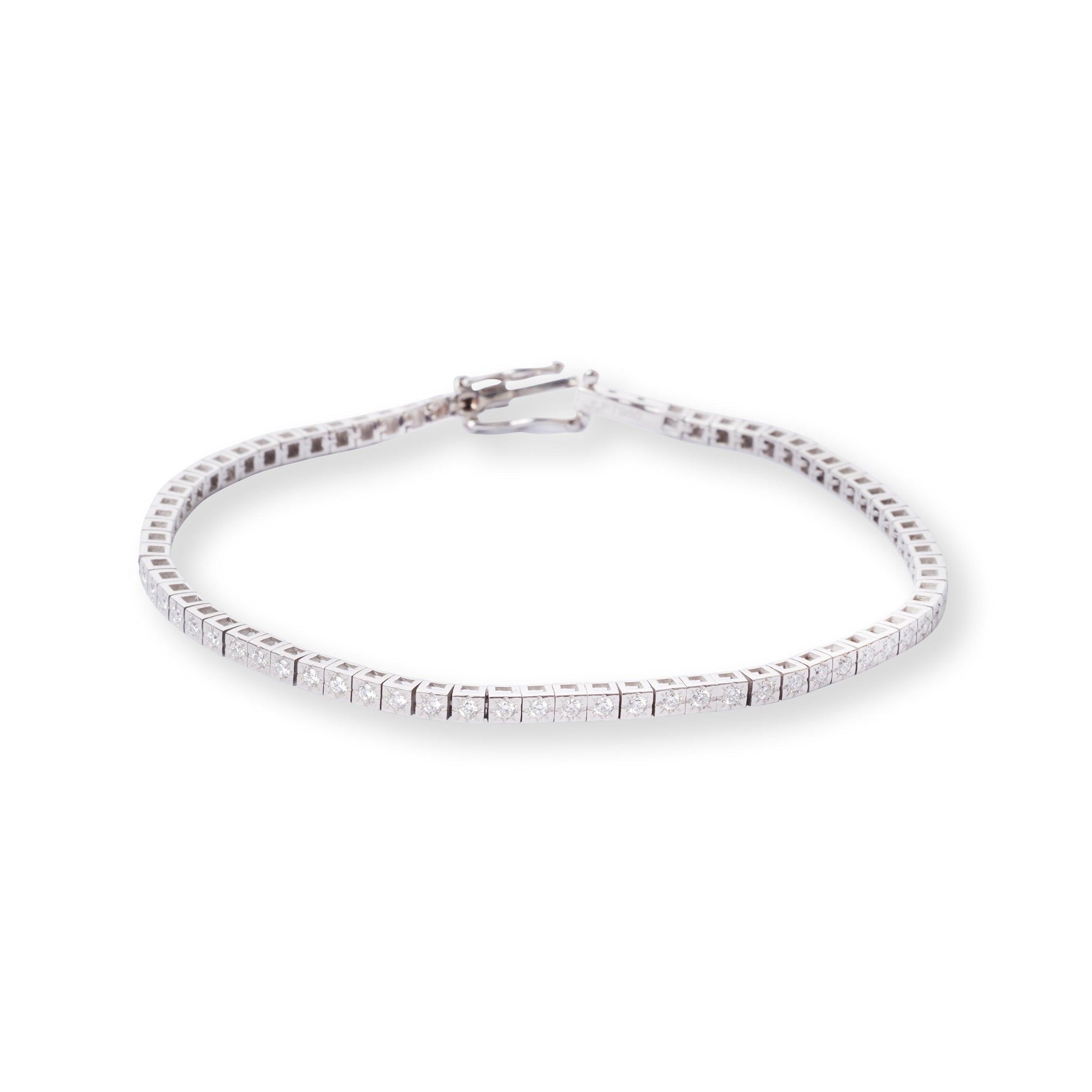 ⚪ Diamanten ⤷ 69 Diamanten ↭ Gesamtkaratgewicht: 0,884 ct ⤷ Farbe und Klarheit: FG, VS ⚪ Maße: ⤷ Länge: 7,5 Zoll ⤷Breite: 2 mm