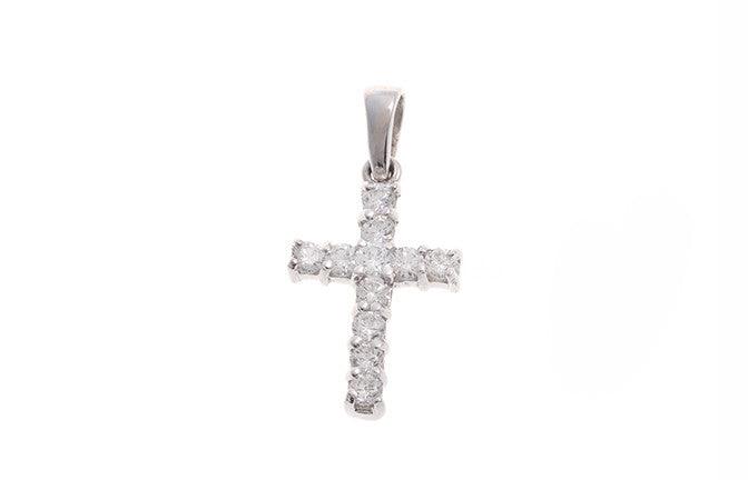 18ct White Gold Cubic Zirconia Cross Pendant (1.9g) P-5488