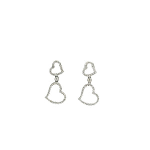 18ct White Gold Diamond Heart Shaped Drop Earrings – Double Open Heart Design