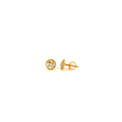 22ct Yellow Gold Cluster Stud Earrings – Cubic Zirconia Round Screw Back Design