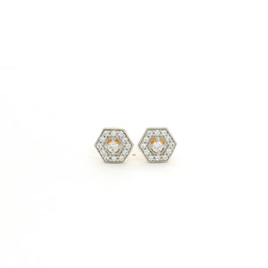 Crafted in rich 22ct yellow gold, these hexagon stud earrings feature a sparkling Cubic Zirconia centre surrounded by a refined geometric halo design. The structured shape adds a contemporary edge, while the stones enhance brilliance and depth. Perfect for both everyday wear and special occasions, they offer a sleek and elegant finish.