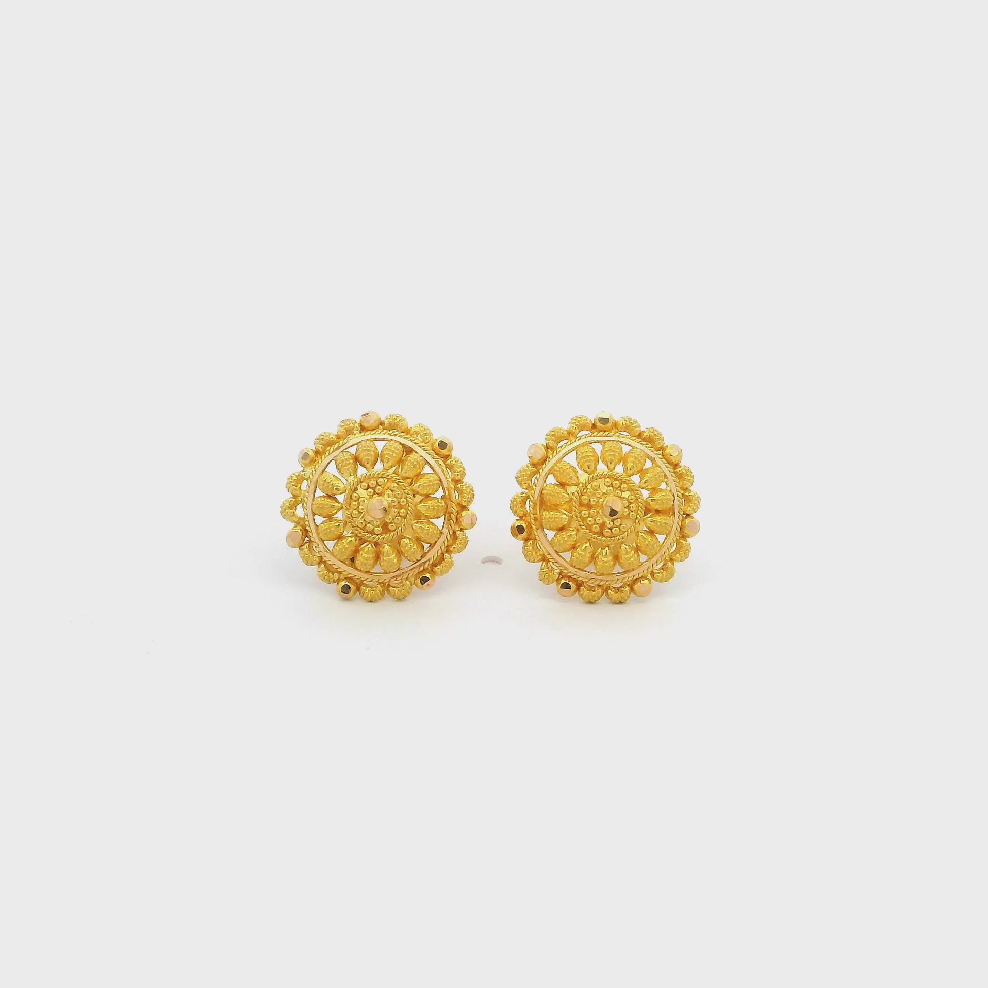22ct Yellow Gold Screw Back Ear Studs – Filigree Design, Lightweight & Secure Fit